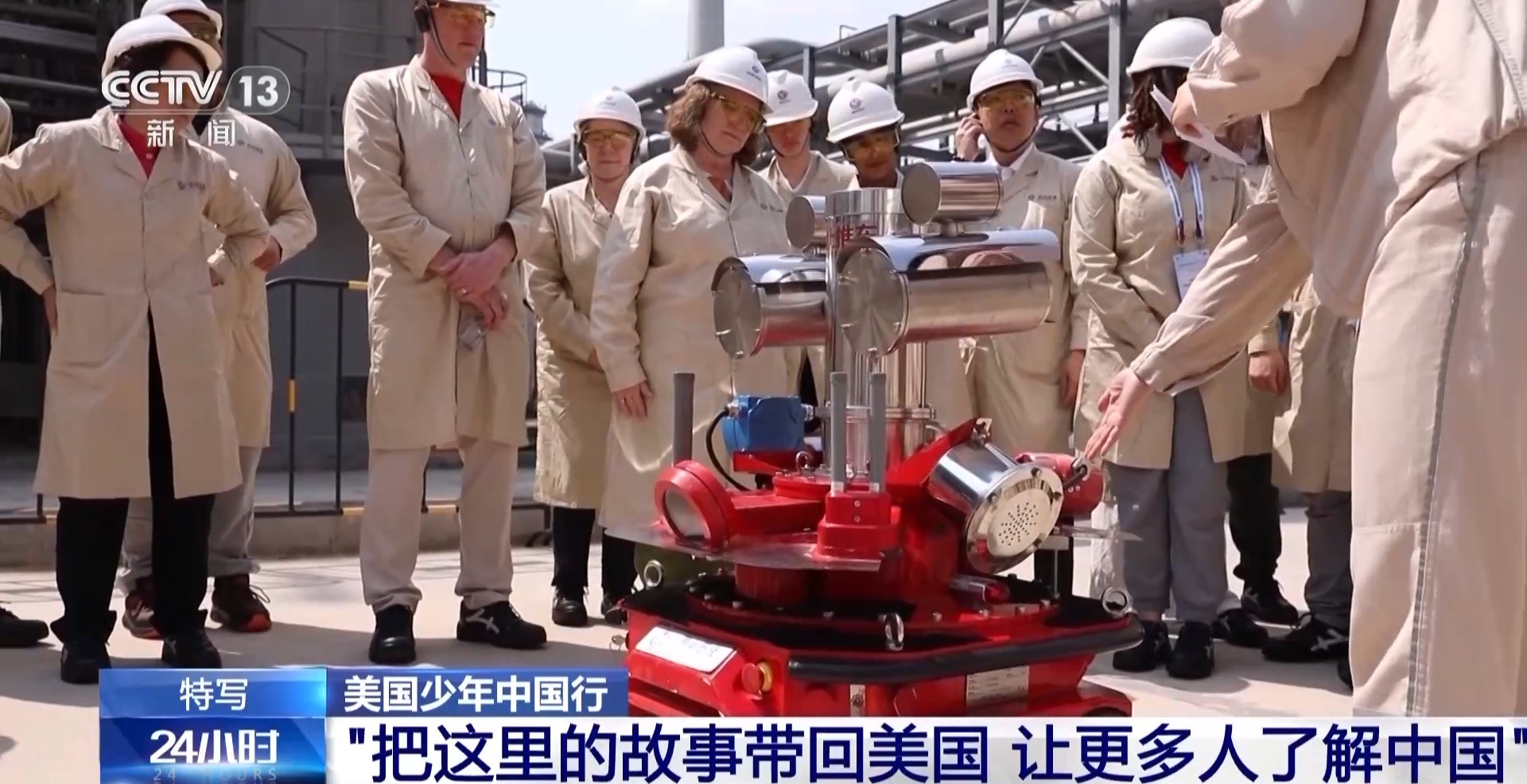 3月26日,美国华盛顿州中学生代表团在中国的最后一天行程,前往了中海油惠州石化参观,在这里,这台红色“小坦克”吸引了同学们的目光。它是防爆智能巡检机器人,也是对厂内各类设备进行安全检测的小小“巡检员”。