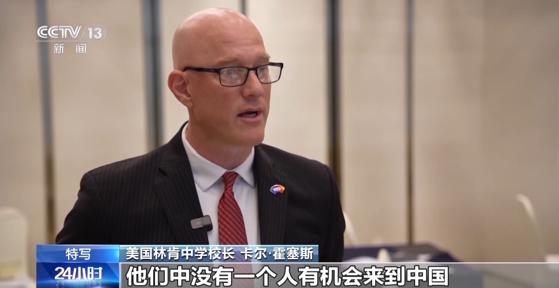 美国林肯中学校长 卡尔·霍塞斯:在此之前,他们中没有一个人有机会来到中国,体验中国丰富的历史和文化。他们与中国的许多学生建立的联系是非常棒的。对我来说,看到他们互动,一起唱歌跳舞,经历一些真正建立跨越文化的桥梁的事情,真的很温暖人心。我很高兴有更多的学生和更多的人能够体验中国这个伟大的国家。