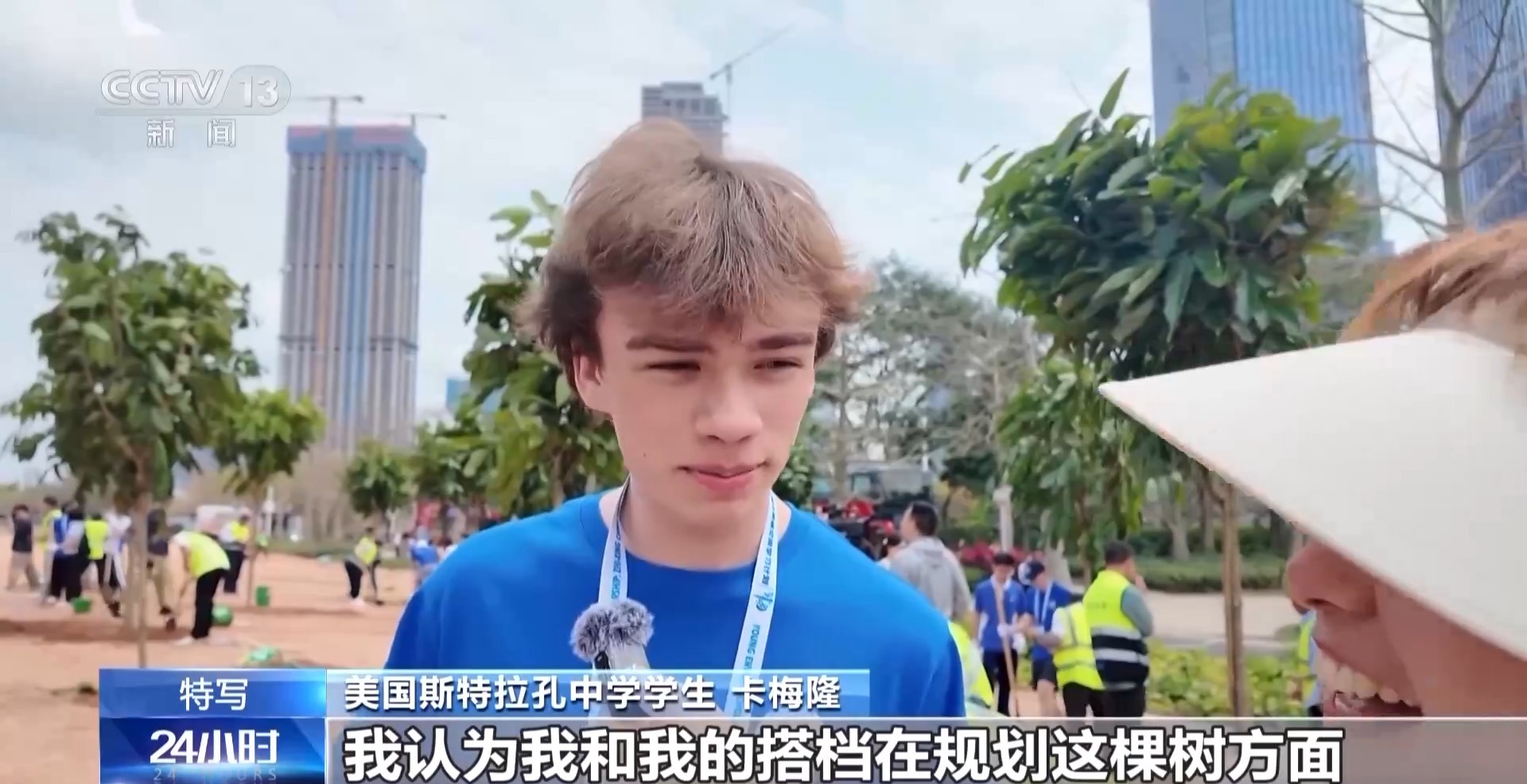 深圳市南山外国语学校(集团)高级中学学生 朱思宇:我觉得非常默契,非常配合,然后我们两个合力也种了这一棵树。我也是觉得中美友谊长青,我觉得非常开心,也有这次机会能在这里种这棵树。