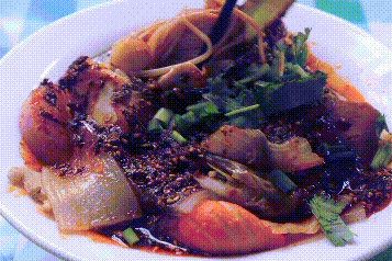 淋上一勺色泽红亮的甘谷辣子
