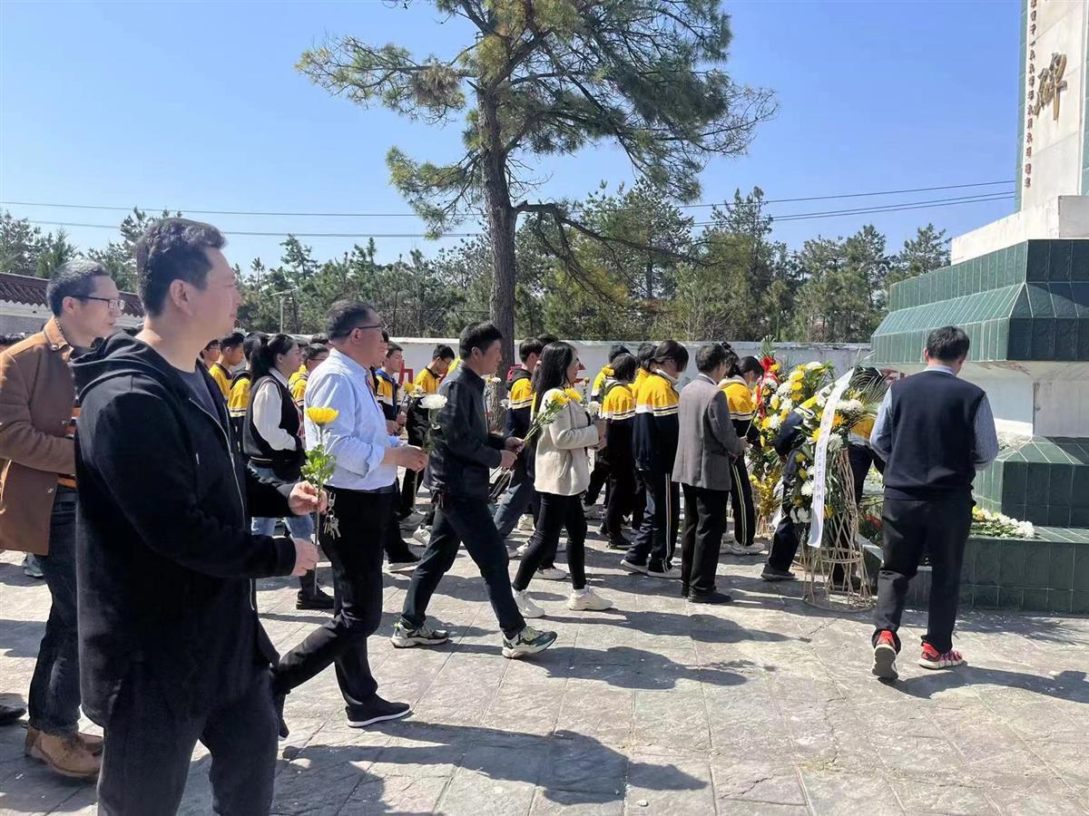 随后,大家缓缓走向纪念碑,驻足仰视、垂头凝思、肃立默哀,怀着崇高的敬意与无尽的哀思,程正金和校党委委员李文畴带领同学们向烈士敬献花篮、鲜花,并细心地抹去墓碑上的灰尘和残枝落叶。