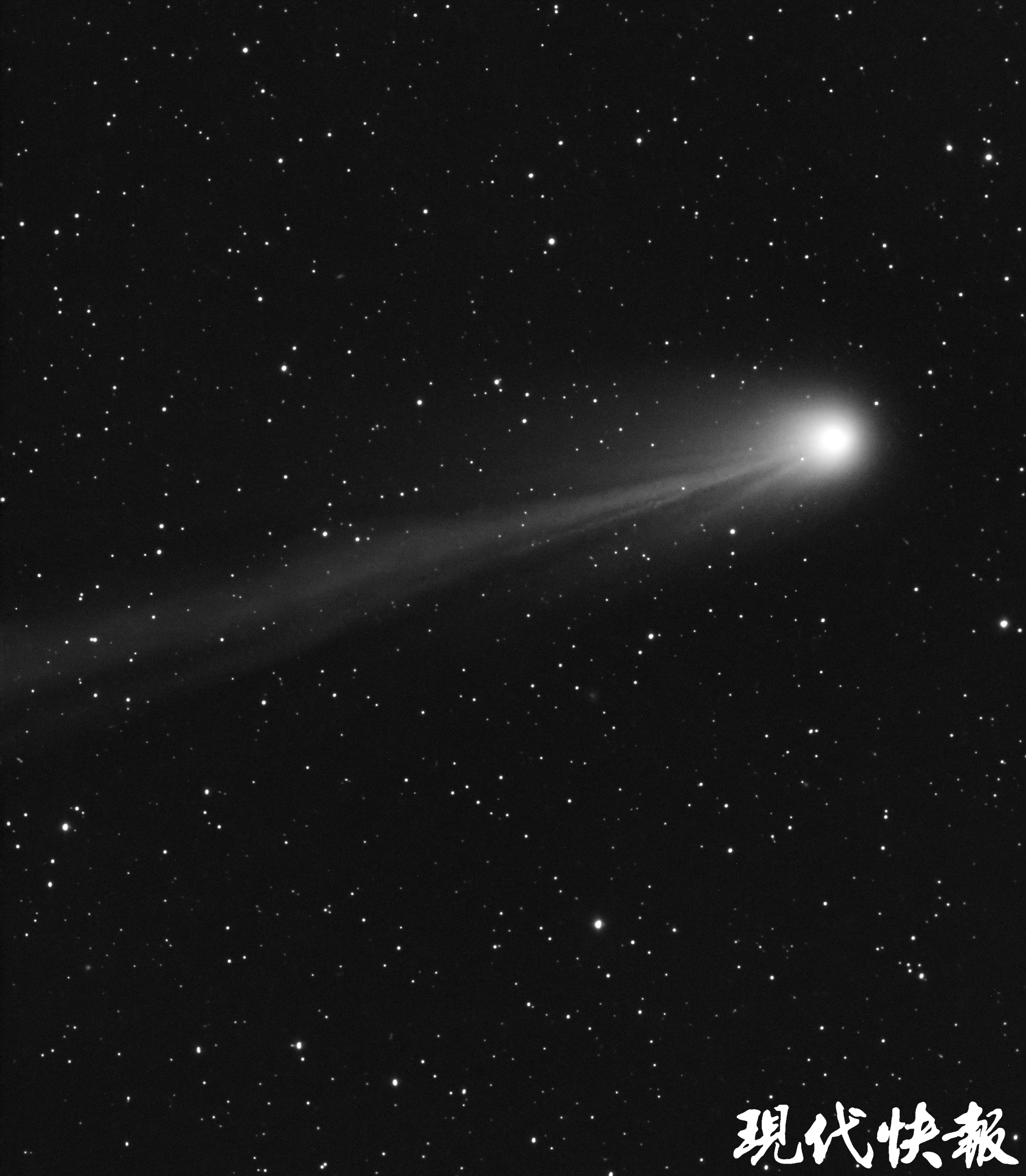“这颗彗星的彗核部分是绿色的,拖着长长的蓝白色彗尾。”姚慷告诉现代快报记者,这颗彗星头朝着太阳落山的方向运行,观测窗口时间非常短,只有在落日后的半个多小时里,在西北方低空才能有机会拍下它的模样。