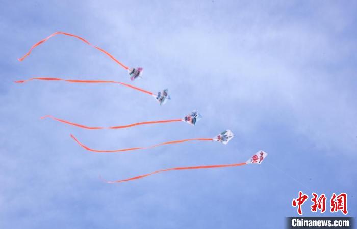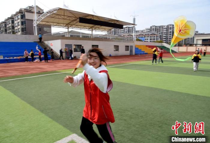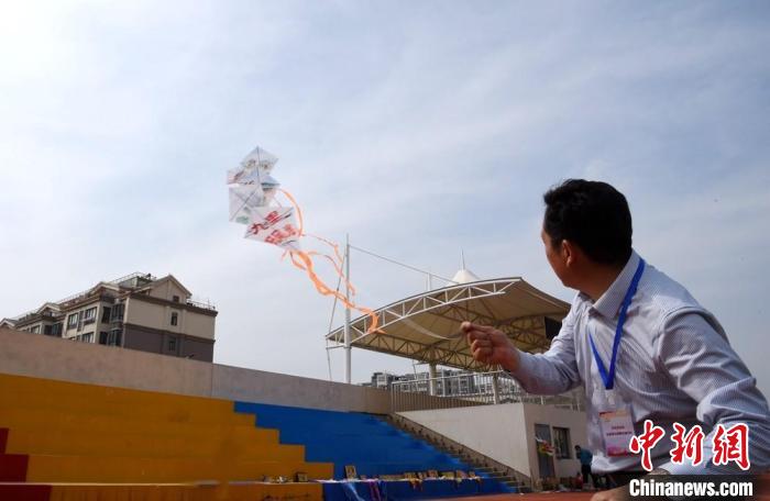 非遗传承人教学生们放飞风筝。朱志庚摄
