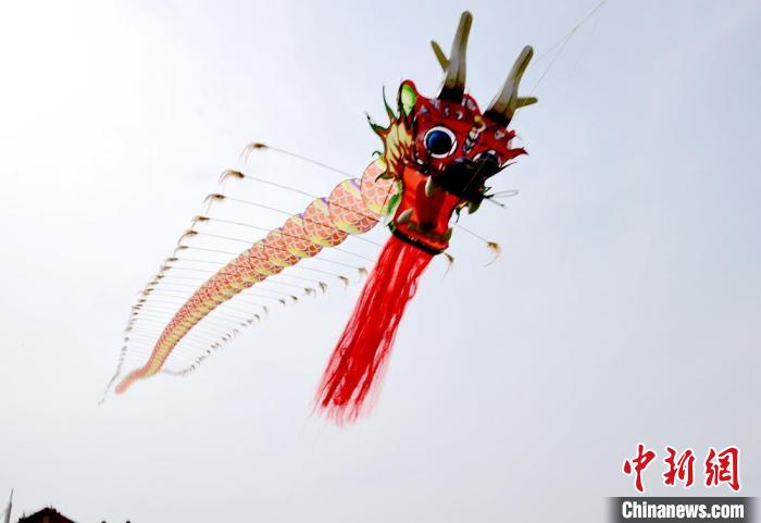 一条20米长的祥龙风筝在丝线的牵引下,迎风飞舞,气势恢宏。朱志庚摄