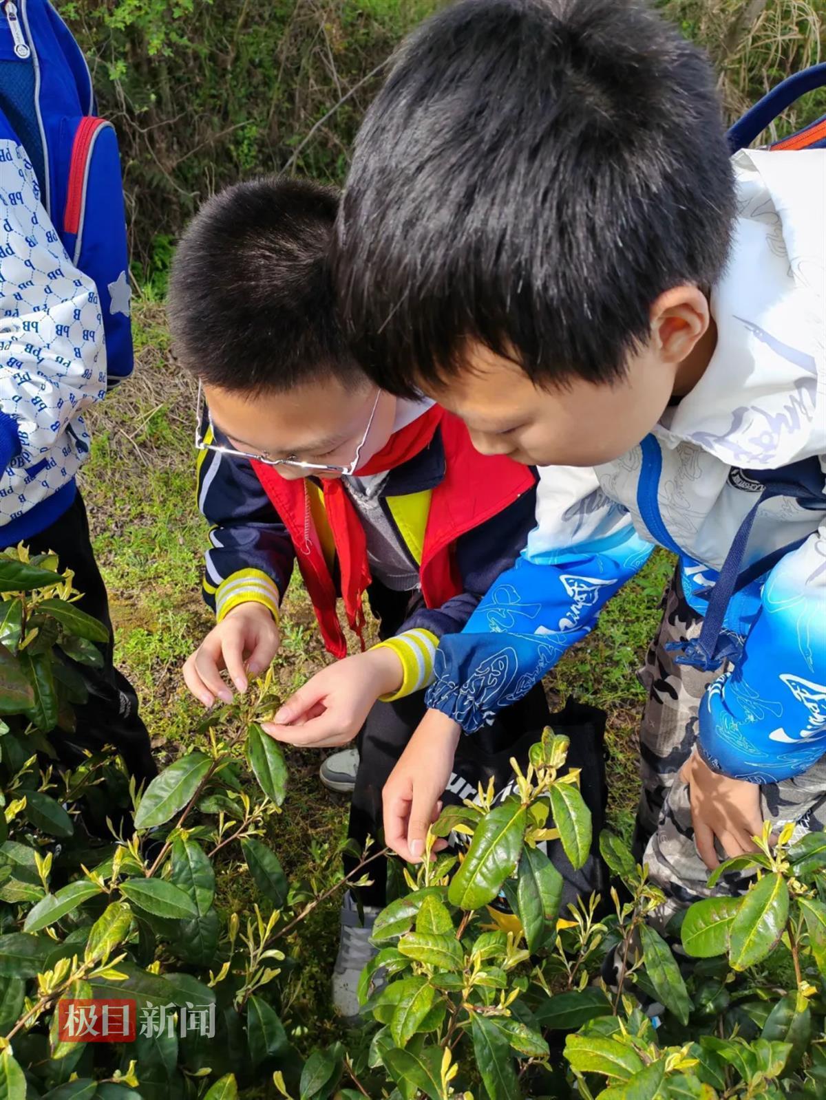 短梗采摘,一叶一芽。用“提”而不是“掐”的方式采茶,专注于将一根茶枝上的嫩芽采尽,虽然他们动作不甚熟练,但是采茶基本要领已经尽在掌握。伴随着欢声笑语,三五成群的学生在茶园穿梭,茶园变得热闹而忙碌。