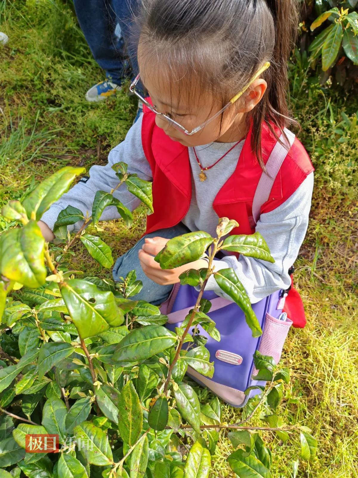 小小读书娃采摘茶叶有模有样