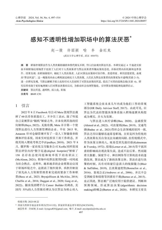 《心理学报》2024年第4期