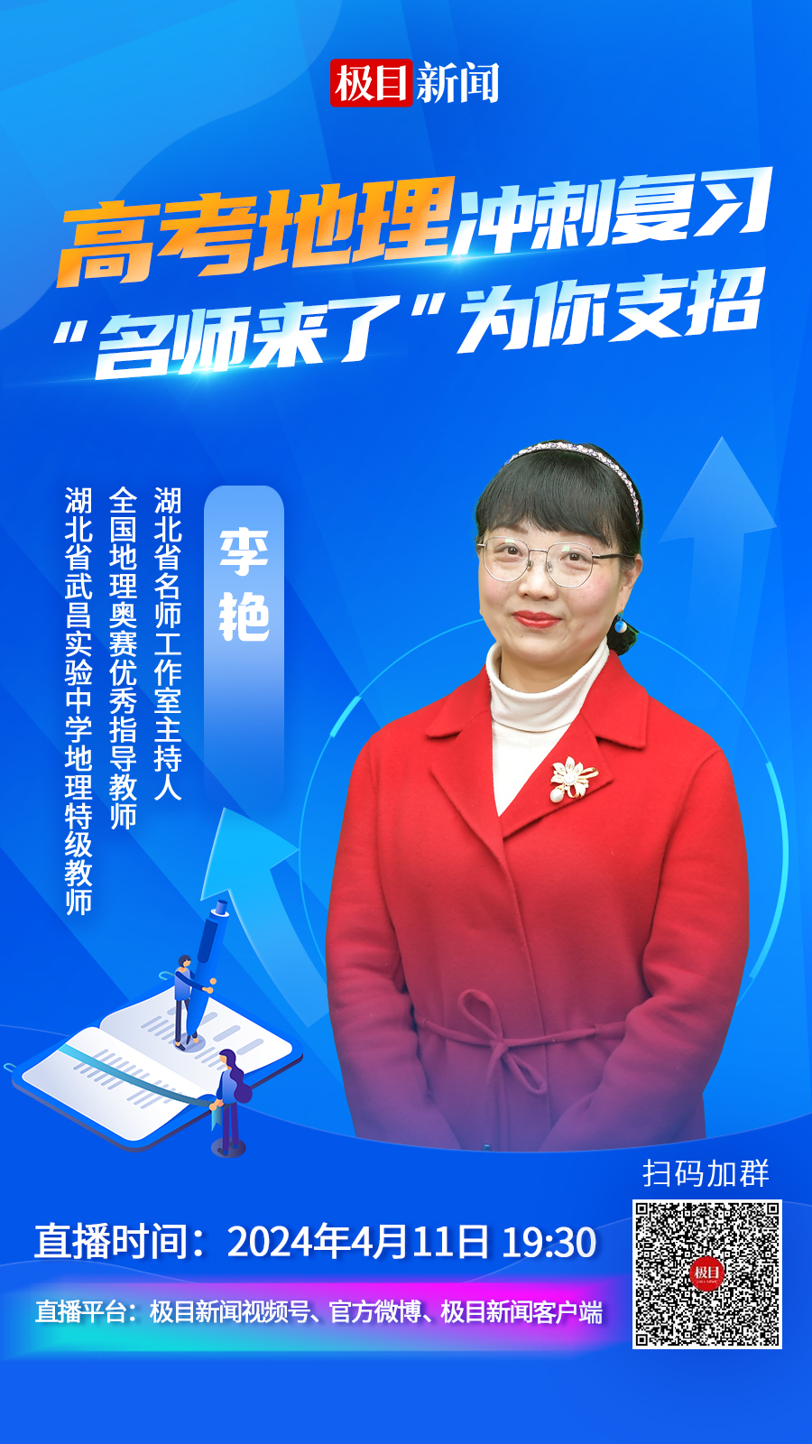 李艳是湖北省特级教师、正高级教师,有着丰富的教学经验,她还是“湖北名师”及湖北省名师工作室主持人。本次直播李艳老师将就地理复习备考给大家一一作答。