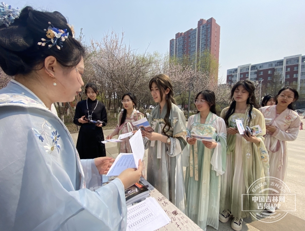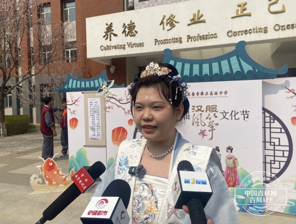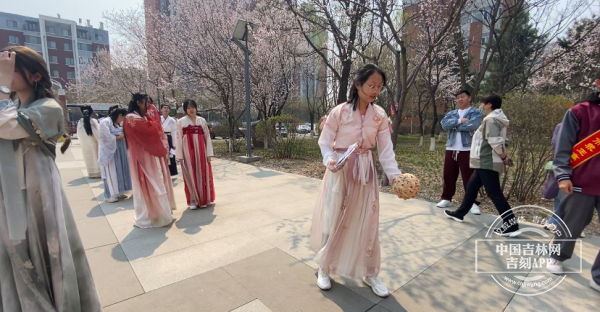长春市养正高级中学语文教师吕晴介绍,活动现场设置了三个小游戏,分别是蹴鞠活动、投壶活动以及古诗词接龙活动。“将汉服和风筝结合在一起,象征着孩子们正在走过人生最美好的一个阶段,一起花开,一起向未来。”她说。