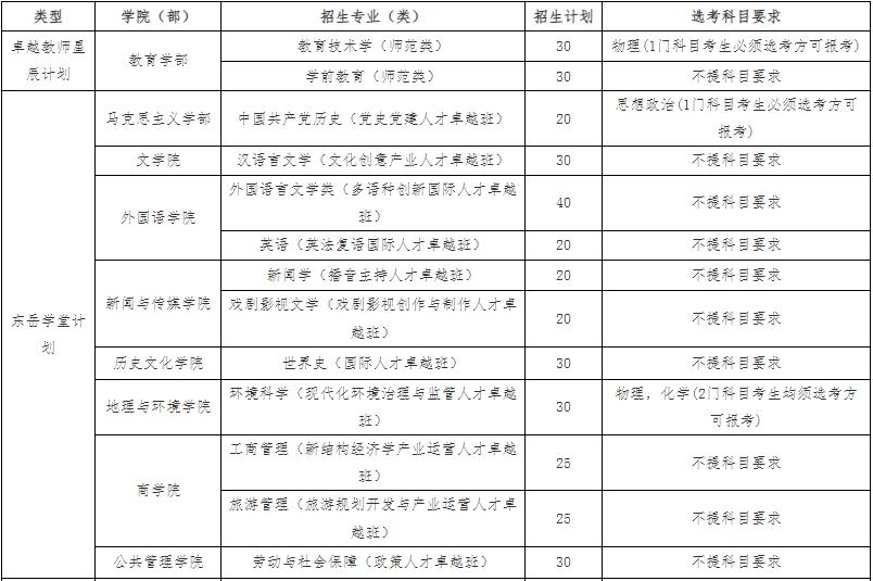 山东师范大学2024年综合评价招生分专业招生计划