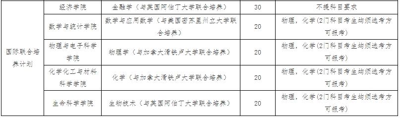 今年要求选考科目中物理、化学均要选考的专业还有数学与应用数学(与美国密苏里州立大学联合培养)、物理学(与加拿大滑铁卢大学联合培养)、化学(与加拿大滑铁卢大学联合培养)、生物技术(与英国阿伯丁大学联合培养)四个专业。