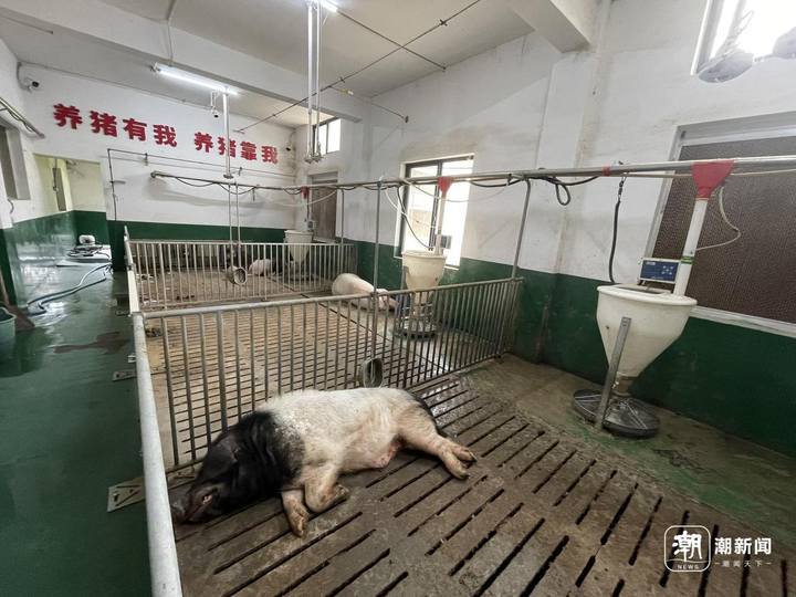 实训中心智慧猪舍,整洁宽敞,没有猪圈常见的刺鼻气味;自动喂食器,红外线探头实时监测猪猪的体温。一只200来斤重的猪猪,悠闲躺在地上休息。猪猪“两头黑、中间白”,正是已有1700多年养殖历史,被誉为“中国熊猫猪”的金华地方特色猪种——两头乌,地道的金华火腿,就是用它的后腿制作。
