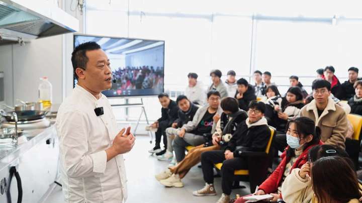 “上课的时候能吃上新荣记的名菜,这幸福感谁懂啊。”回想起课堂上的黄金带鱼,新荣记学院大一新生戚嘉川不禁舔了舔嘴。