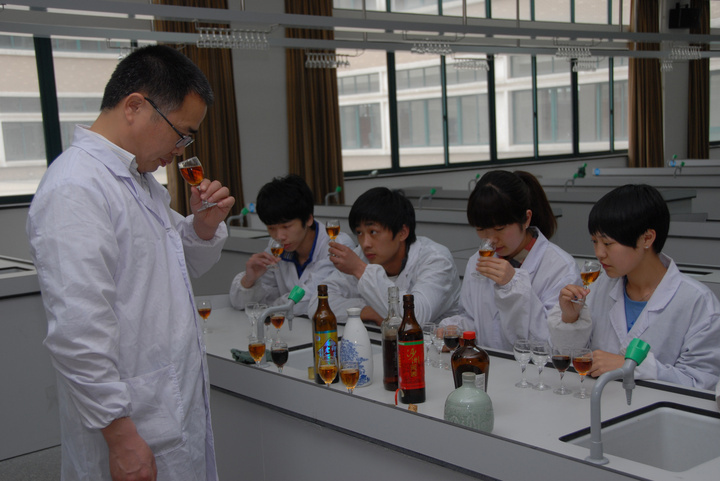 “生产车间”里,学生们在酿酒大师、企业工程师和学校教师的联合授课下,操作仪器设备,认真实践,老手艺和新技术在日复一日的实训中慢慢交融、发酵。