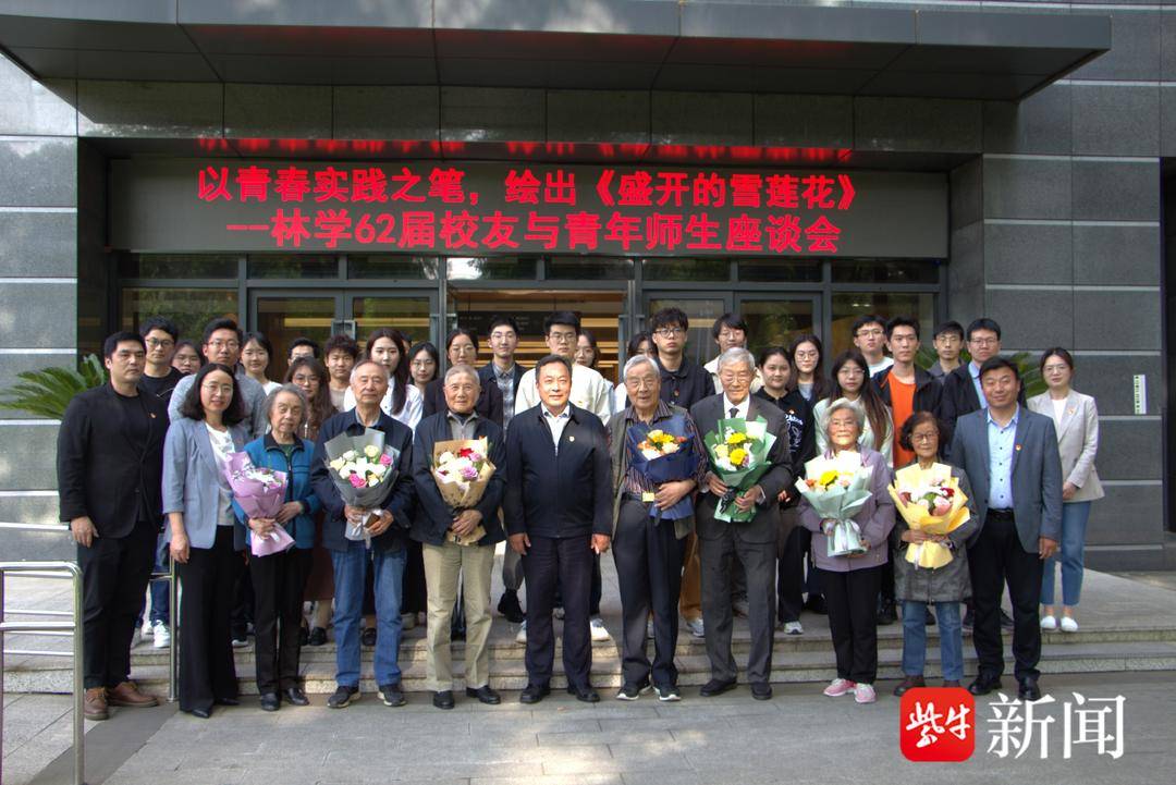 听着老校友们对支边岁月的深情描述,仿佛一场跨越时空的对话,更像是翻阅一本人生的参考书。林草学院新疆籍学生唐宇玫激动地说:“谢谢所有和周老他们一样,几十年来投身祖国西部边疆建设的人们,是他们用勤劳的双手,克服难以想象的困难,自力更生、艰苦奋斗,才让我的家乡发生了天翻地覆的变化。”“碧水青山”耕读坊学生代表徐峥,在读完《盛开的雪莲花——新疆原始森林勘察日记》一书后感慨万千。“为了一个共同的目标,来自五湖四海的年青人汇聚在一起,用青春滋养着雪域高原上一朵朵盛开的雪莲花,为祖国边疆的发展注入源源不断的活力。”座谈会上,同学们自发向“银发导师团”的老校友们送上鲜花,一张张年轻的面庞上写满敬仰,那是他们坚定投身祖国建设,成长为可堪大用、能担大任的新时代南林青年的信心与决心。