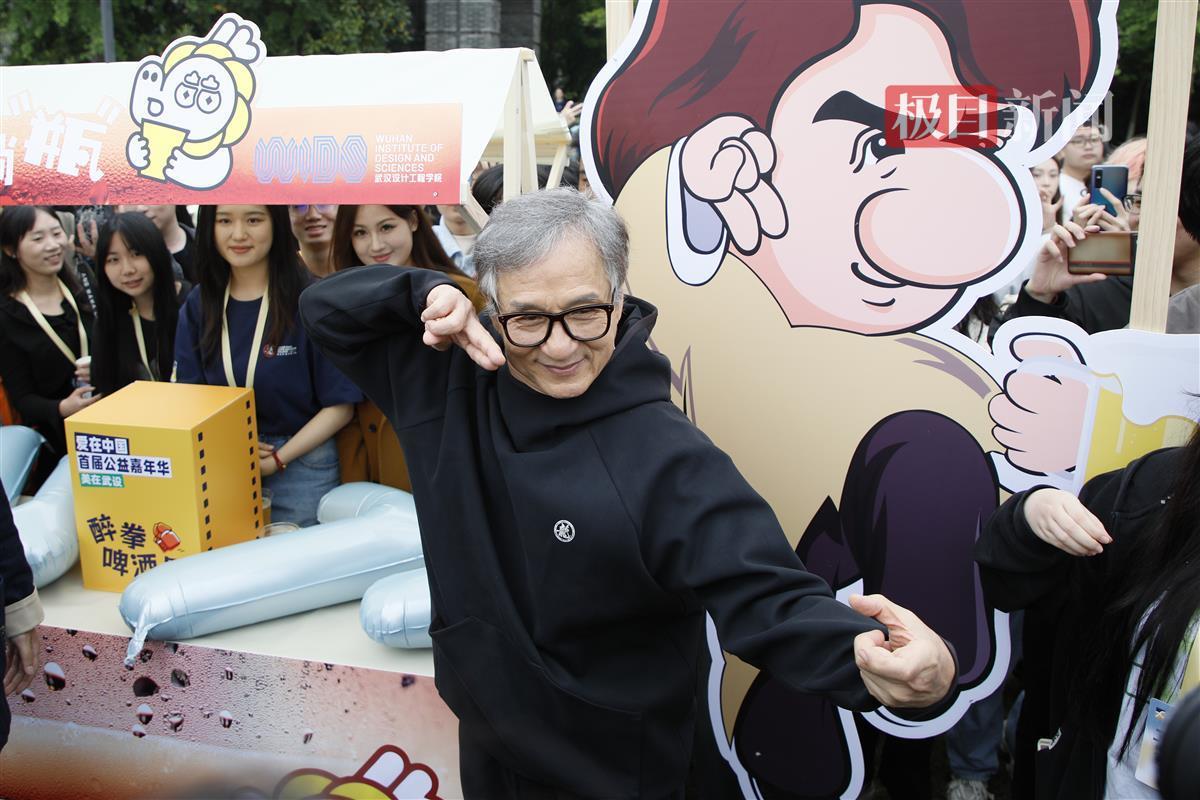 在“龙年不躺‘瓶’的醉拳啤酒屋”摊位前,成龙院长品尝了由该校食品与生物科技学院学生自制的啤酒,表示“好喝,不错不错”,还即兴摆了醉拳pose。学生自制啤酒与经典电影《醉拳》的梦幻联动,让学子们感慨“且狂、且痴、且醉、趁年少”。
