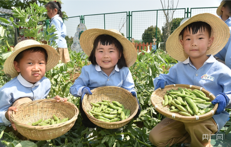 合肥市安庆路幼儿园桃蹊分园幼儿收获种植的豌豆(央广网发合肥市庐阳区委宣传部供图)