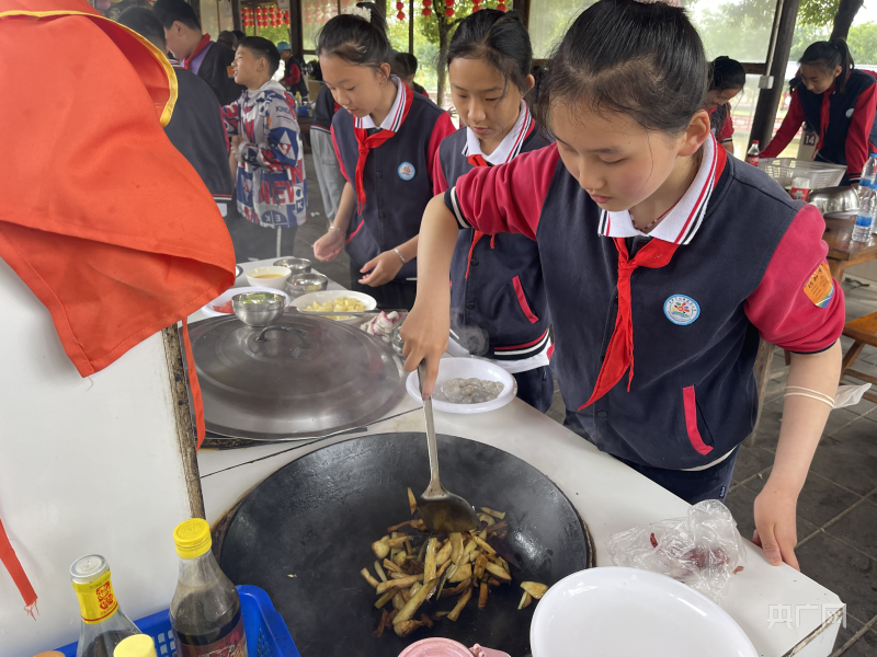 合肥市南门小学湖畔分校学生体验制作餐食(央广网发合肥市庐阳区委宣传部供图)