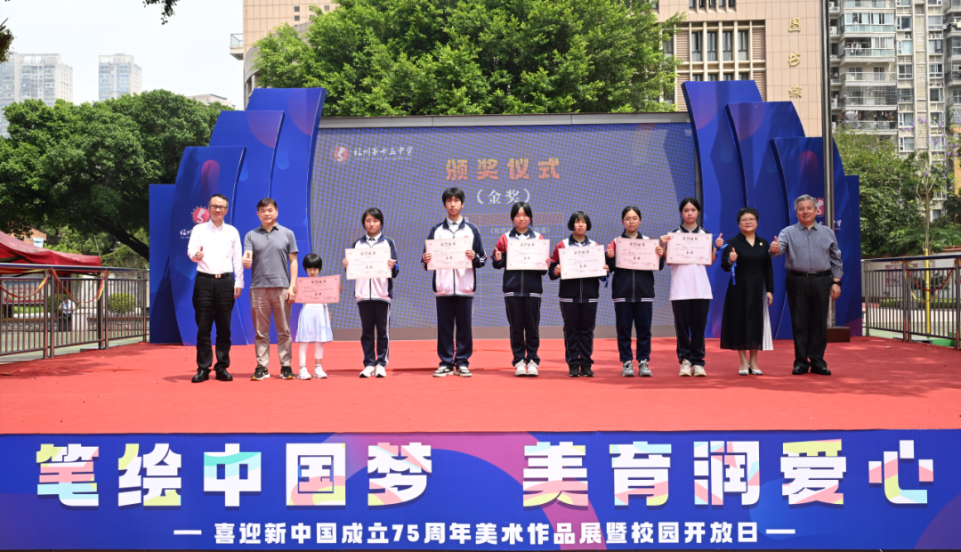 5日上午,福州十五中举行“笔绘中国梦,美育润爱心”——喜迎新中国成立75周年美术作品展暨校园开放日活动。这也是福州市首次举行中学生美术大展。