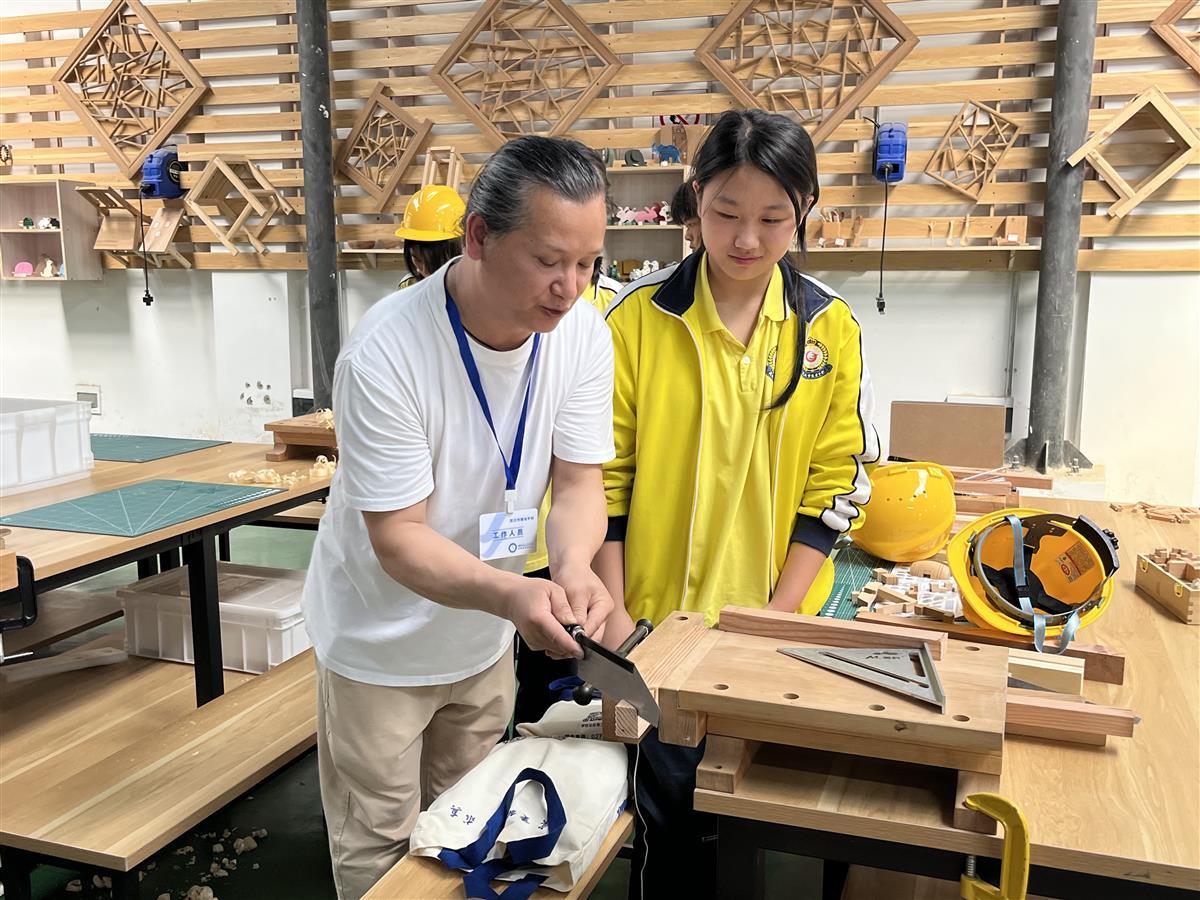 在该校木工坊,楚才中学的同学们还了解到锯、刨子等传统工具,他们还拿起锯子,现场尝试手工切割动物图案。随后,该校同学还来到该校VR体验馆,在VR技术的辅助下,感受施工现场可能遇到的各种危险。