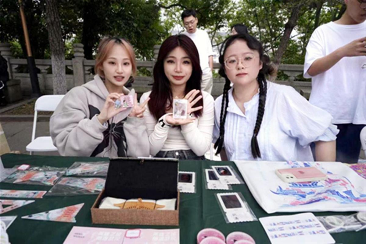 在湖北文创市集上,除了展示作品外,同学们还积极参与市集售卖活动,向游客介绍产品创意灵感来源,分享制作过程中的心得体会。这种互动交流不仅促进了学生与社会的联系,也丰富了市集的文化氛围,吸引了众多游客关注。在活动中,学院师生设计制作的地标纪念章、漆扇、黄鹤楼手提袋、文创套尺、冰箱贴、多肉摆件等受到不少游客欢迎,销售“火爆”,70本收集册、50把漆扇、60个手提袋被抢购一空。活动首日,师生们的文创产品销售额就突破了2900元,总销售额达5200余元,不仅代表了市场和消费者的认可,也激励着东湖学子在实践中出成果,不断提升设计能力和营销能力。