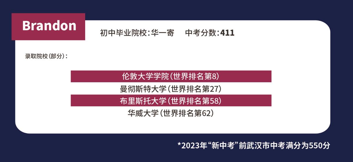 Brandon初中就读于华一寄,当时,他在文科学习上露出了不足。“文科老师总要求我们背诵一些答题模板,但是我不能理解这种教学模式,总是学不好,慢慢地恶性循环开始了,我开始丧失了对于文科方面的学习兴趣。”