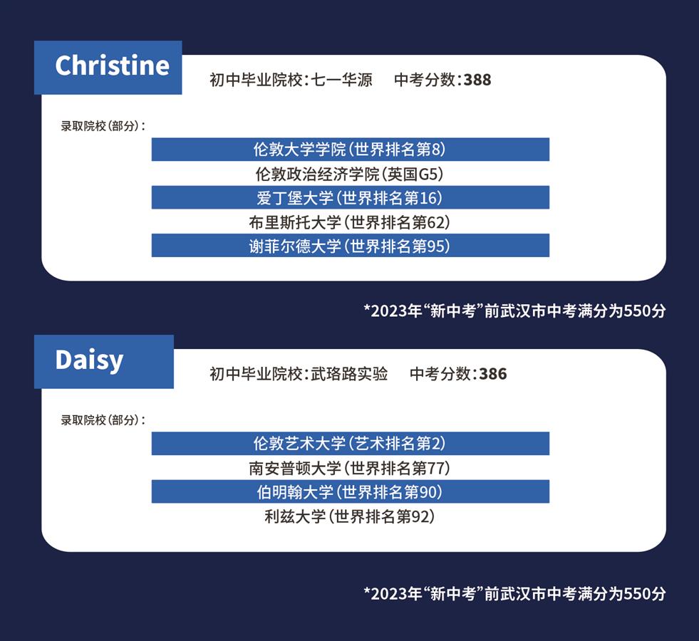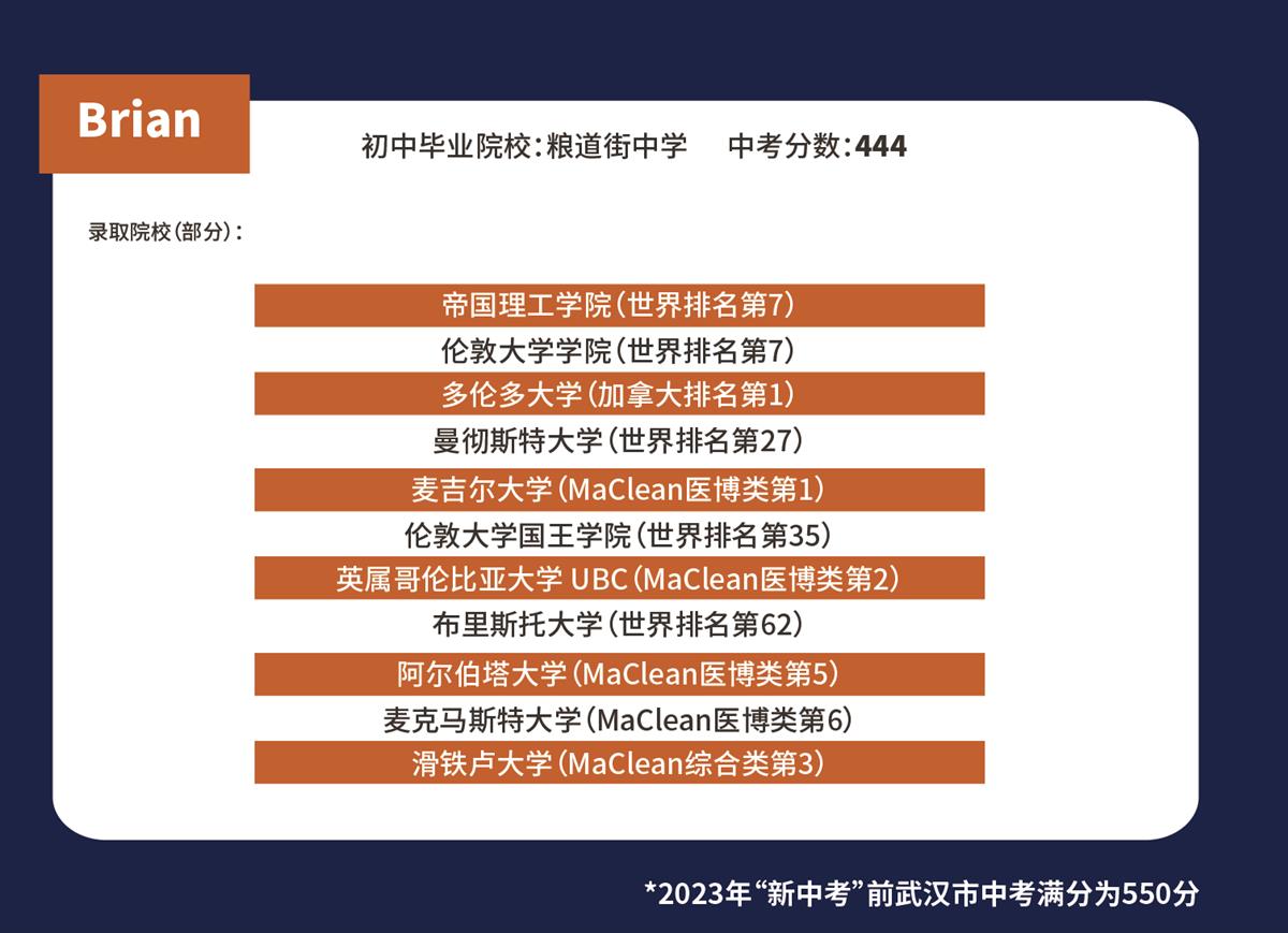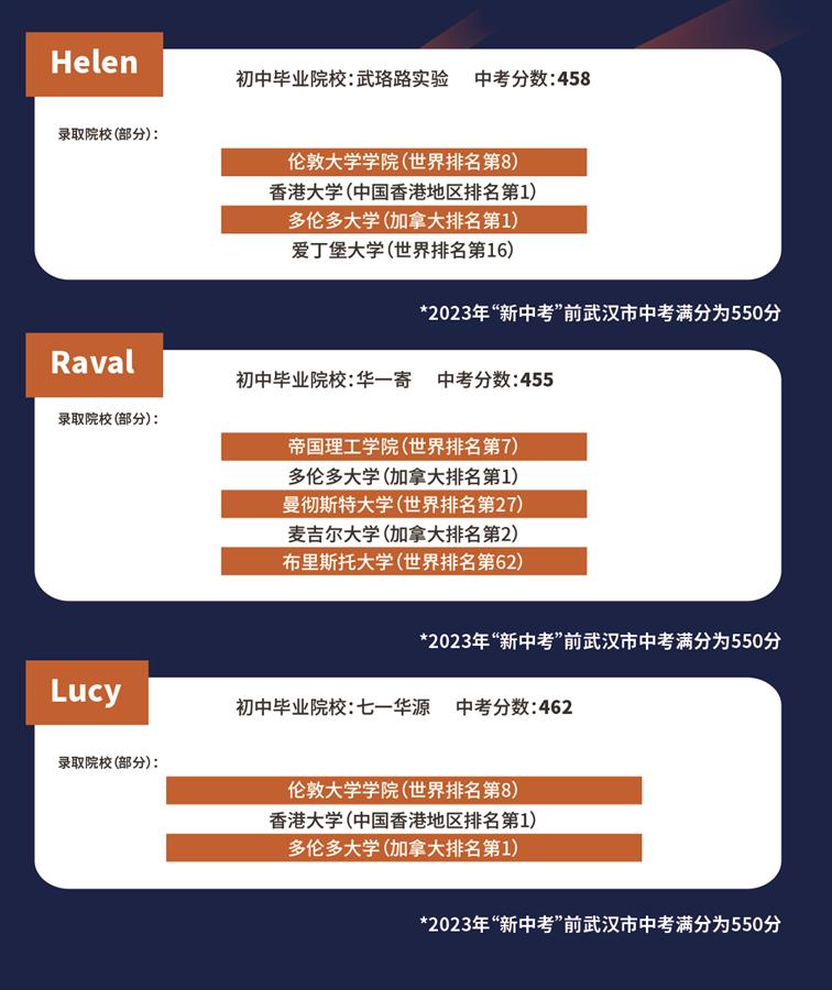 入学时中考成绩处于普高线至市示范线的学生,32%收获世界排名前10大学录取,51%收获世界排名前30大学录取,76%收获世界排名前50大学录取。