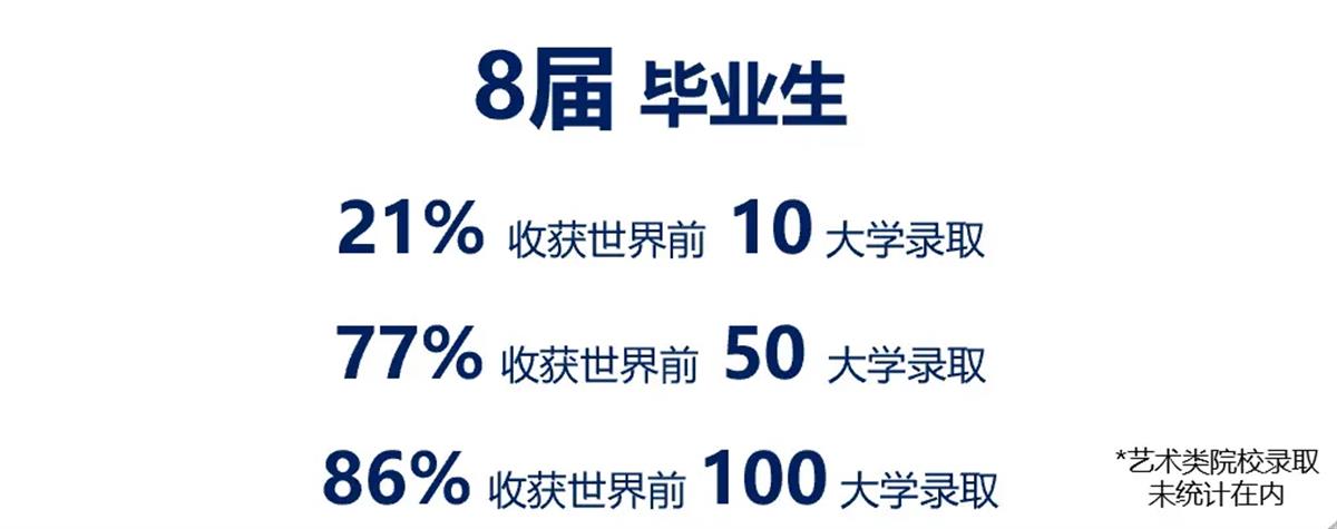 入学时中考成绩处于市示范线至省示范线的学生,36%收获世界排名前10大学录取,68%收获世界排名前30大学录取,86%收获世界排名前50大学录取。