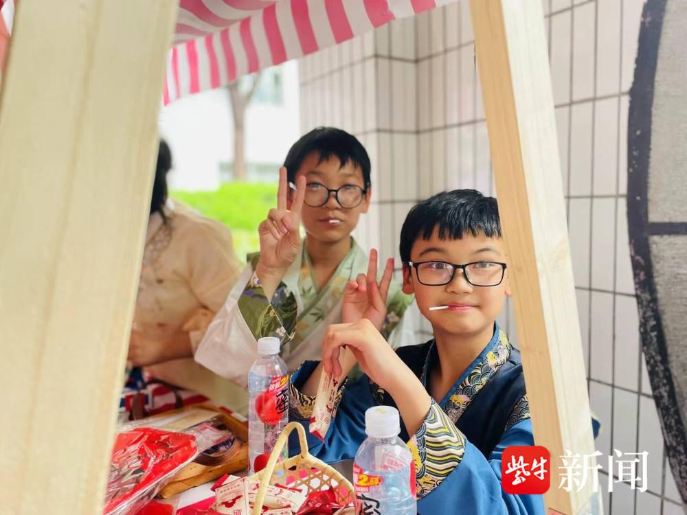 四年级的同学们用“镇江三怪”之一的锅盖面,引领众人开启一场味蕾的狂欢。摊位前人头攒动,香气四溢,同学们纷纷驻足品尝,赞不绝口。而摊位背后的同学们更是忙得不亦乐乎,用自己的勤劳的双手,将家乡的味道传递给了每一个人。