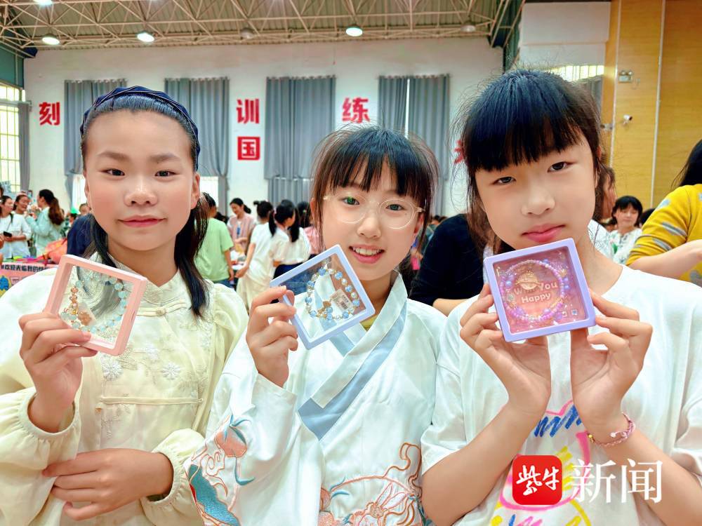 “我也想试试推独轮车!”“哈哈,我投中了!真好玩!”五年级的摊位上,独轮车、投壶、射箭等传统游戏吸引了众多小朋友的争相体验。小摊主们身穿汉服,一边解说游戏规则,一边亲自示范,热情的服务赢得了顾客的一致好评。太平泥叫叫、串珠等手工艺品更是让人爱不释手,成为了集市的热门商品。