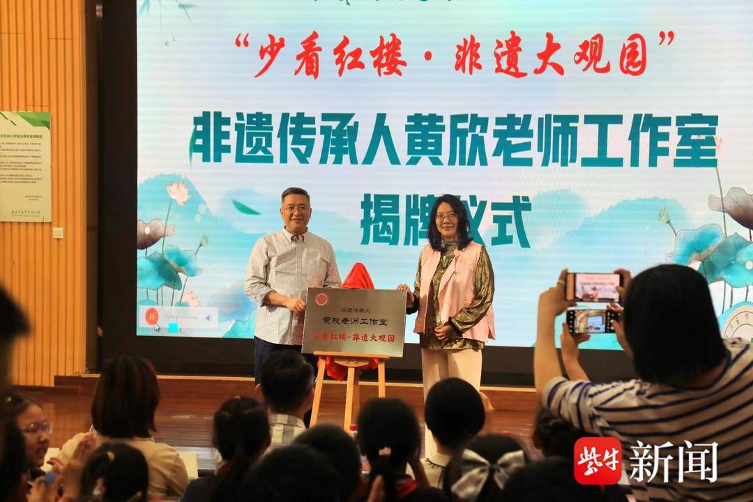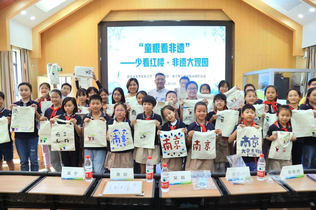 听非遗传承人讲“红楼里的非遗文化”,用云锦布贴画DIY无纺布袋……5月16日下午,南京市光华东街小学开设了一堂别开生面的非遗课程,让孩子们在动手动脑中爱上非遗,进而爱上中国传统文化。当天,南京市非遗项目“昆曲清曲”代表性传承人黄欣老师在学校设立的“少看红楼·非遗大观园”工作室揭牌。