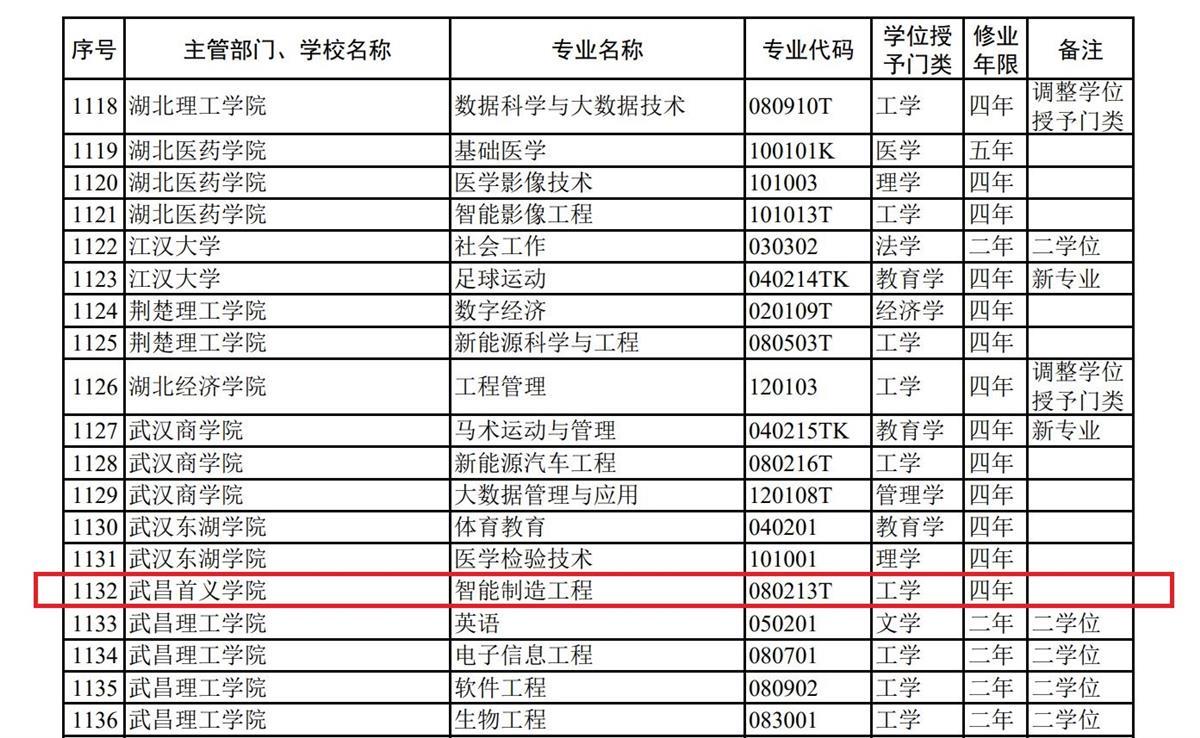 5月22日,极目新闻记者从武昌首义学院获悉,该校今年新增智能制造工程1个本科专业。