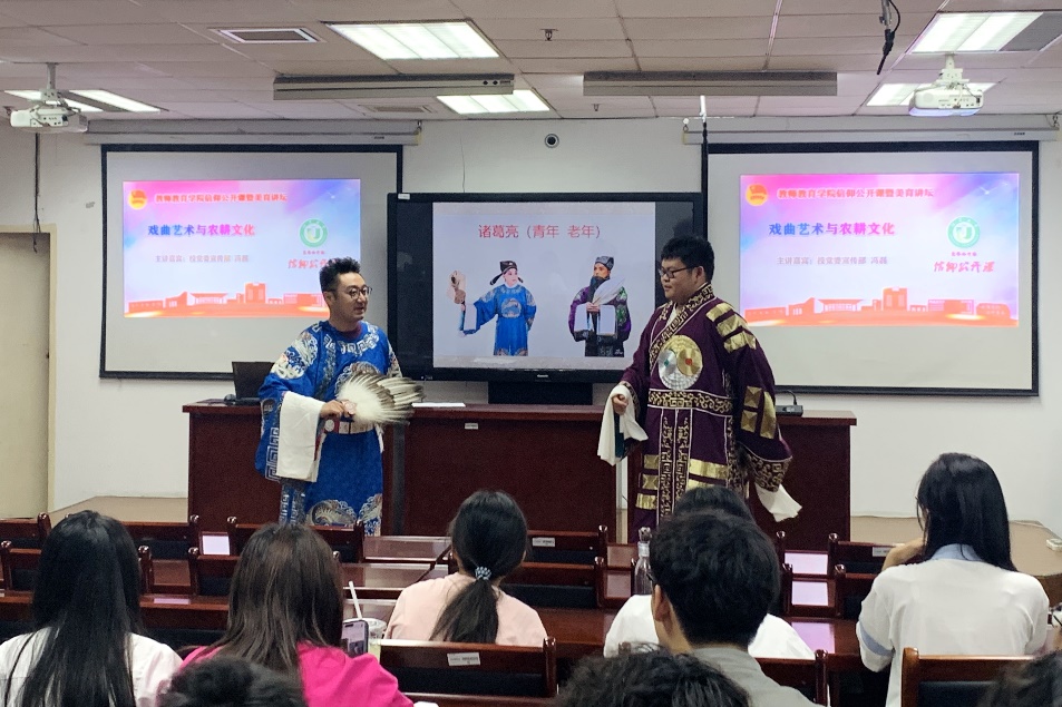 现代快报讯(通讯员曹冬记者曹德伟)“戏曲艺术是中国文化宝库中的一颗璀璨明珠,其中农事活动和农耕文化是戏曲艺术中重要的表现内容之一。”近日,“戏曲艺术与农耕文化”美育讲坛暨主题信仰公开课在江苏大学教师教育学院报告厅举行。江苏大学戏曲传承基地负责人、镇江市戏剧曲艺家协会副秘书长冯磊受邀为同学们带来一场戏曲文化主题讲座。
