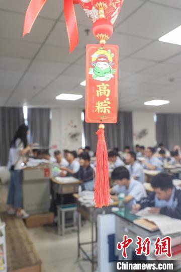 图为南昌五中一高三教室门口悬挂着印有“高粽”字样的祝福贺卡。刘力鑫 摄