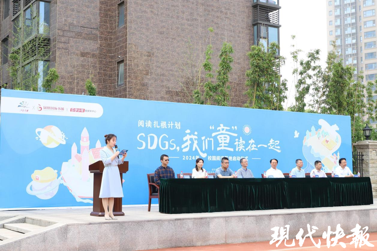 现代快报讯(记者郑文静)近日,由江苏省全民阅读促进会指导,南京凤凰国际书城联合乐学少年融媒体中心共同主办的“SDGs,我们‘童’读在一起”系列阅读活动之“校园阅读基地”启动仪式在南京市立贤小学举行。作为南京凤凰国际书城4·23“世界读书日”系列读书活动的延续,该活动同时也拉开了书城迎“六一”活动的序幕。