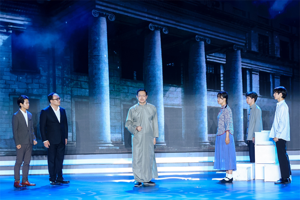 为保存教育文脉,大夏大学在抗战时期先后内迁江西庐山、贵州贵阳和赤水等地,在颠沛流离中坚持办学近9年。现场,“扬之水”中文话剧社的情景音画《自强不息》,再现了大夏抗战西迁的历史片段,演绎了大夏大学创始人王伯群校长毁家纾难、献身教育的故事。