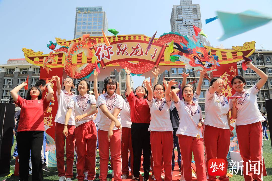 6月3日,高考前的最后一次晨会上,南京市金中集团人民中学举行“辰龙逐梦六月鹏飞”2024届中高考鼓劲大会。同学们满载着师长、学弟学妹们的祝福,穿过“鲤”跃龙门,放飞梦想的纸飞机,元气满满迎接高考。