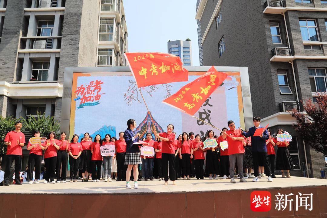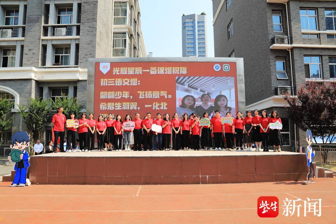 “最慢的脚步不是跬步,而是徘徊。笃志前行,虽远必达!高三语文组祝大家乘六月长风,蟾宫折桂;破千里巨浪,金榜题名!”“数学组祝高三学子有理数、无理数,心中有数!三角形,四边形,样样都行!条形图,扇形图,大展宏图!”“太阳直射点一路向北奔你而来,为你的六月带来最足的光照。”“祝福你们在化学高考中,思维如催化剂般高效运转,答题如化学反应般精准无误。”……高三初三各学科组根据各自学科的特点花式送祝福,令人热血沸腾。