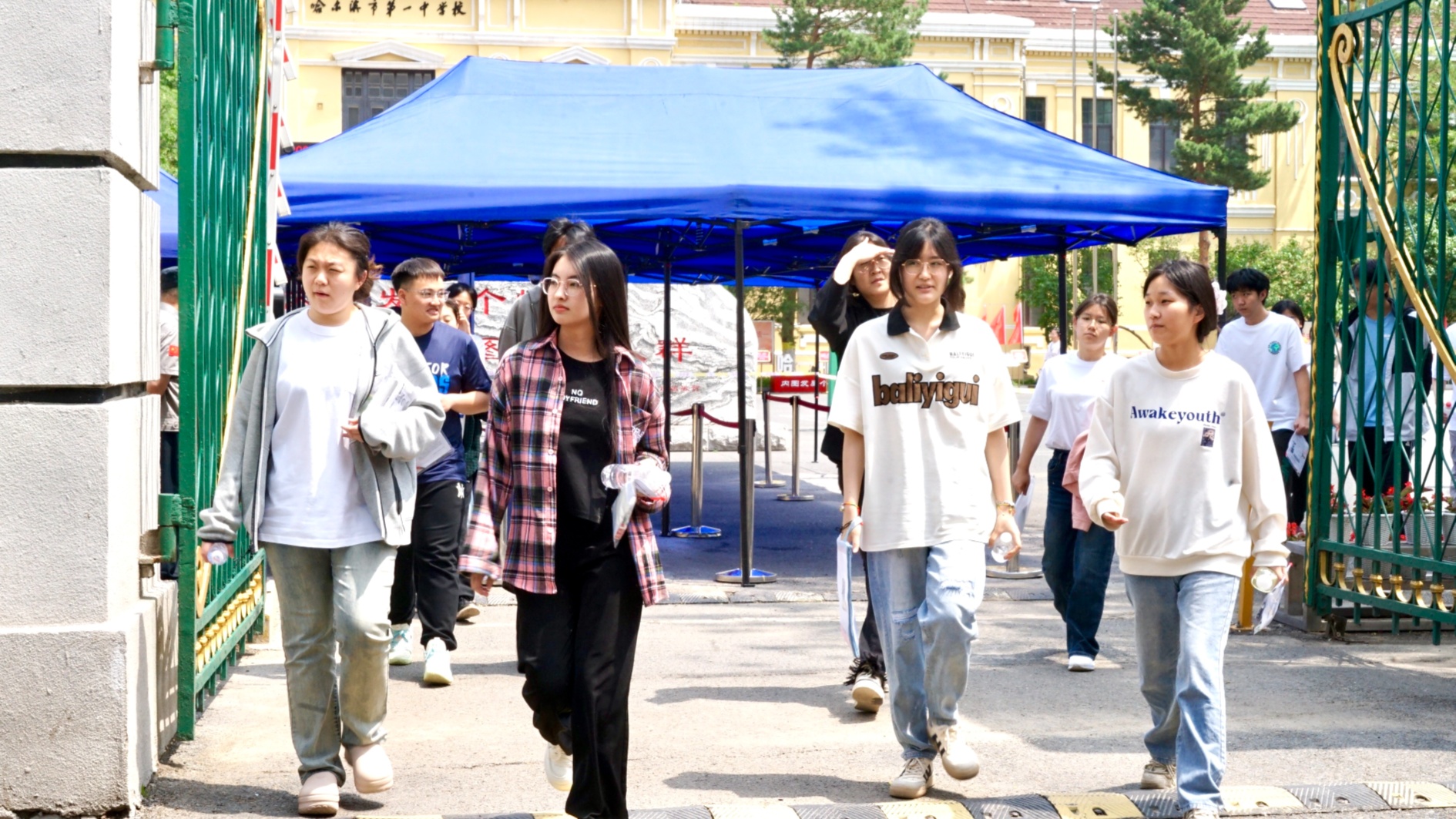 语文考试结束,考生走出考场(央广网记者马俊玮摄)