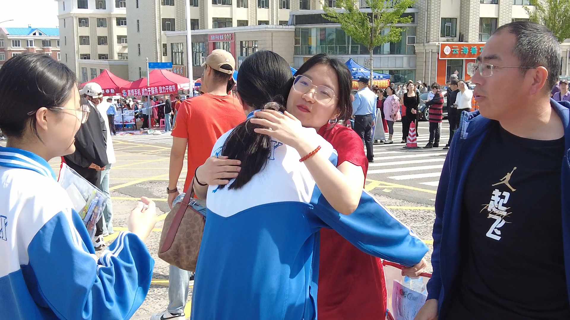 考生进入考场前和家长拥抱(央广网发高虹摄)