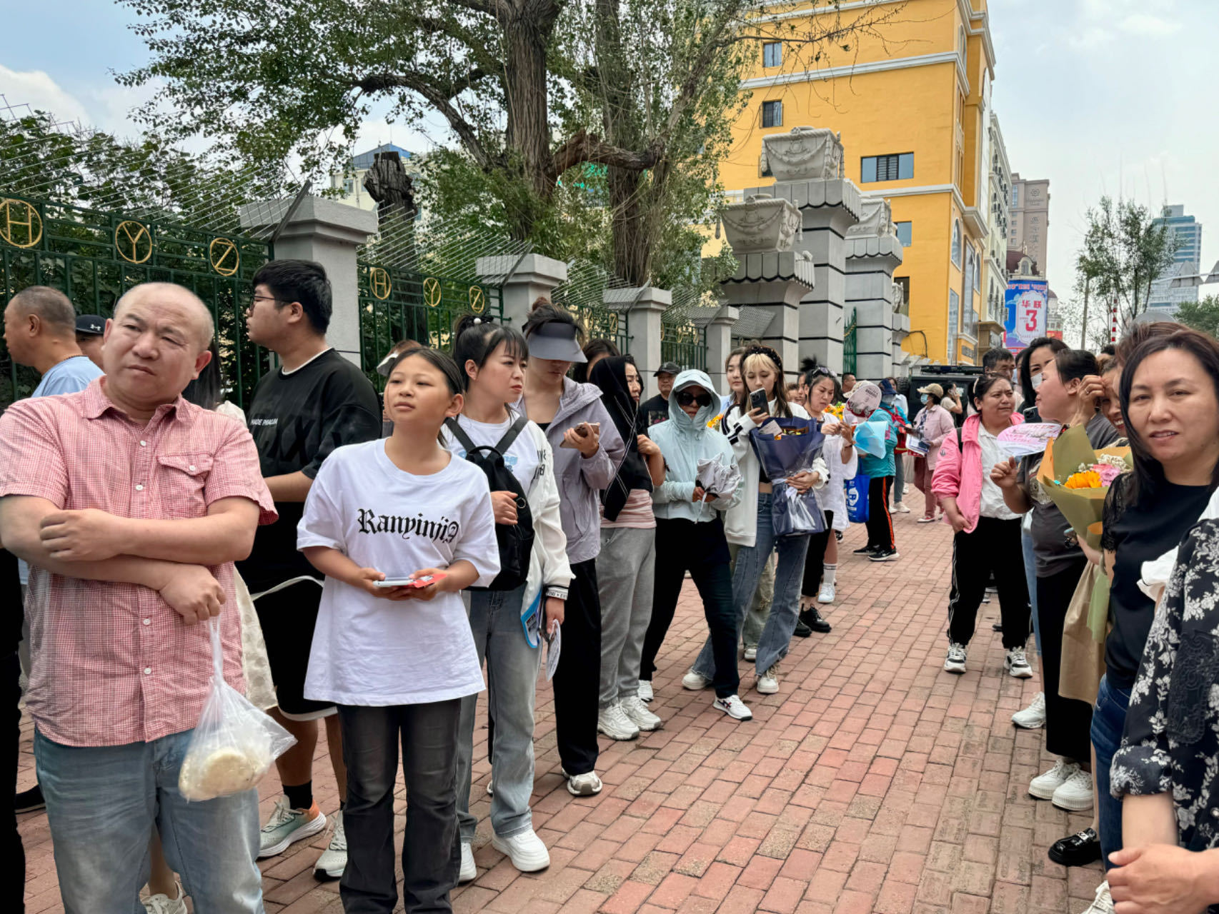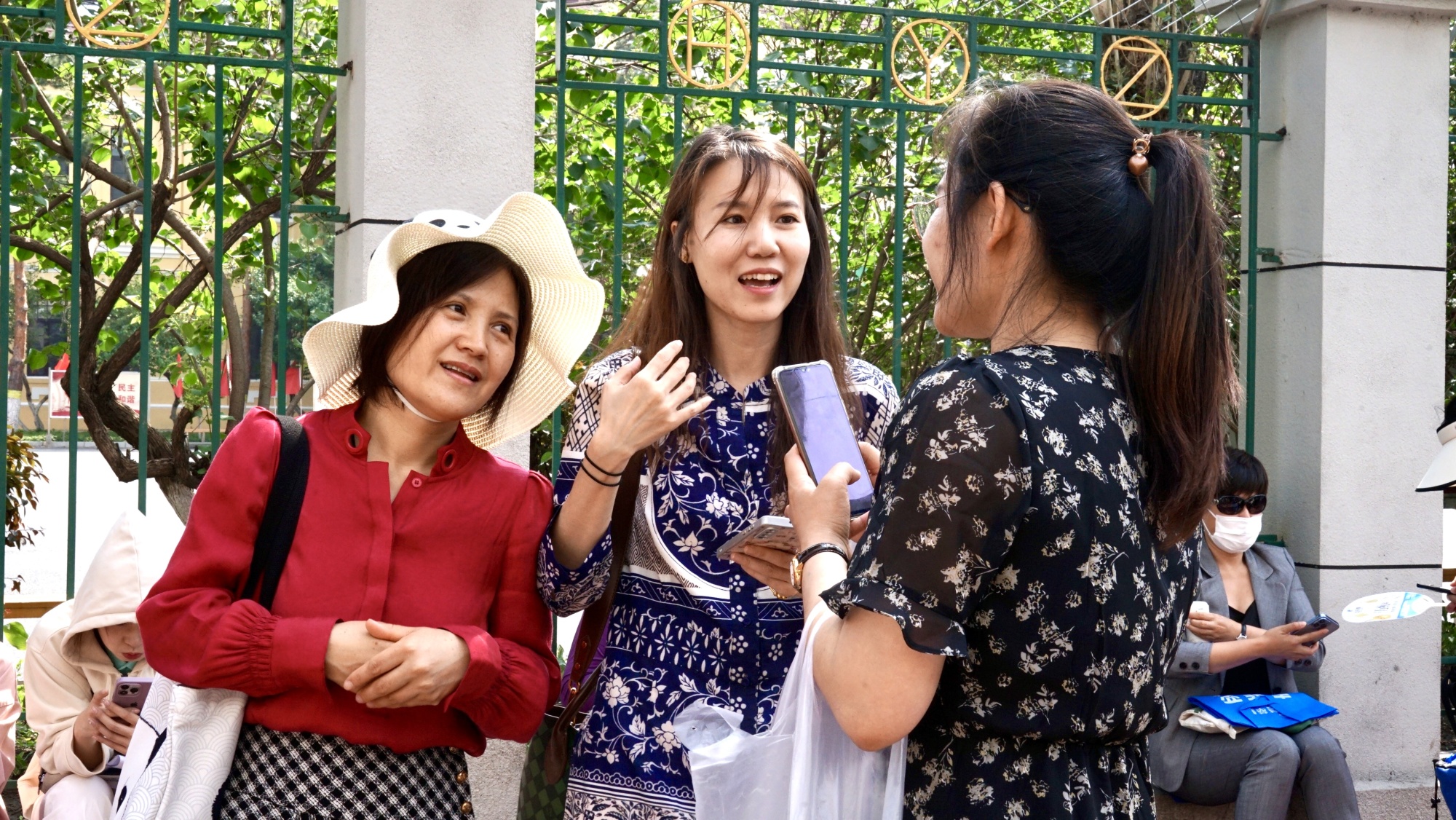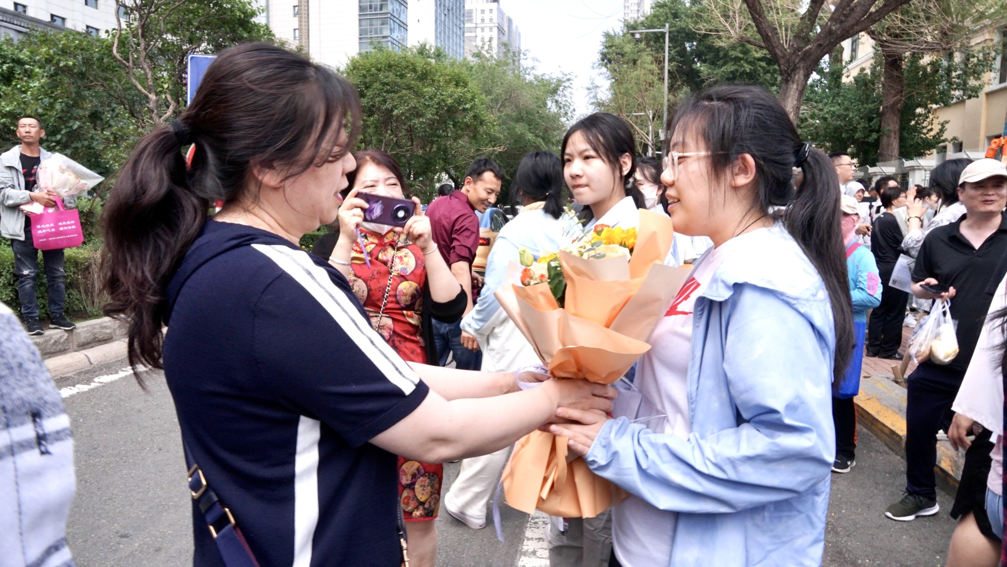 为了给考生讨个好彩头,不少家长身着各色旗袍、手捧鲜花,成为一道靓丽的风景线。