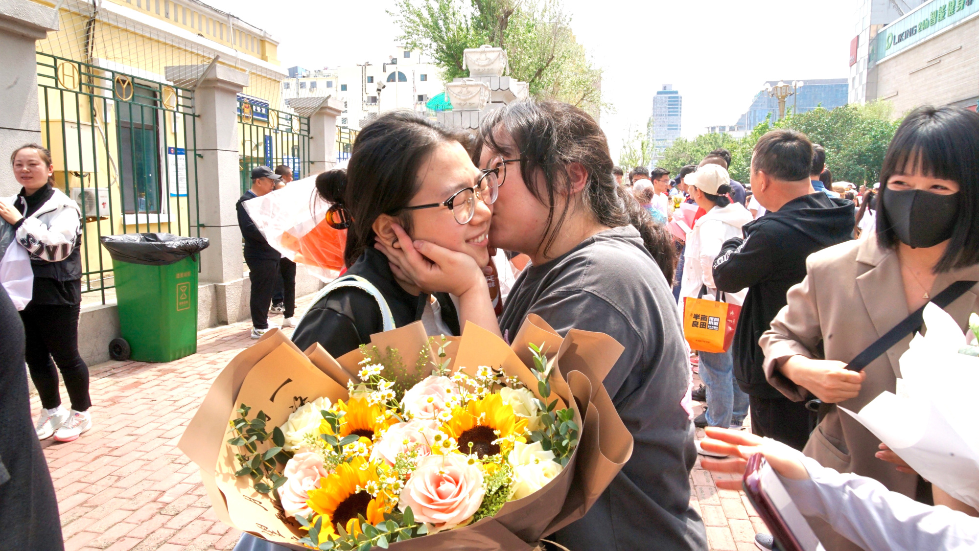 中午11时30分,高考语文考试结束,学生们或自信满满、或神情严肃地走出考场。他们接过家长们准备的鲜花和礼物,分享着第一科目考试的感受。