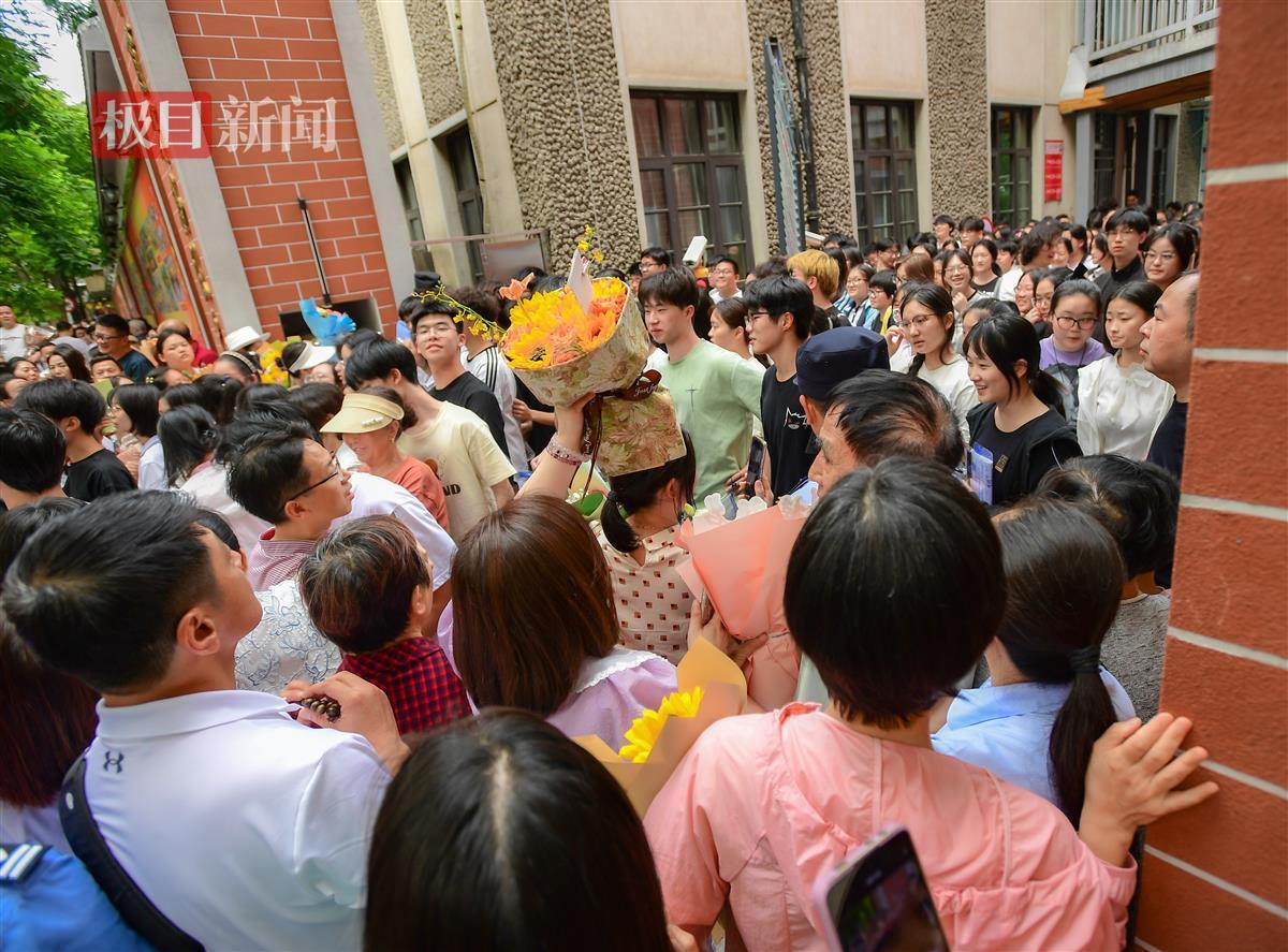 武汉市育才高级中学考点,同学们走出考场(极目新闻记者刘中灿 摄)