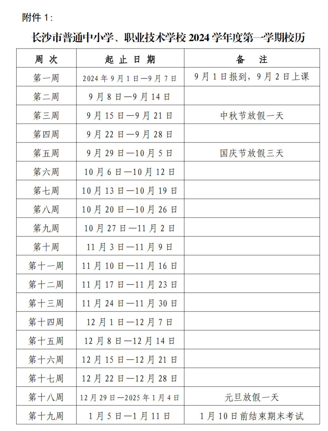 第一学期:2024年9月2日上课,2025年1月11日结束,全学期共19周。寒假从2025年1月12日开始,2月8日结束。