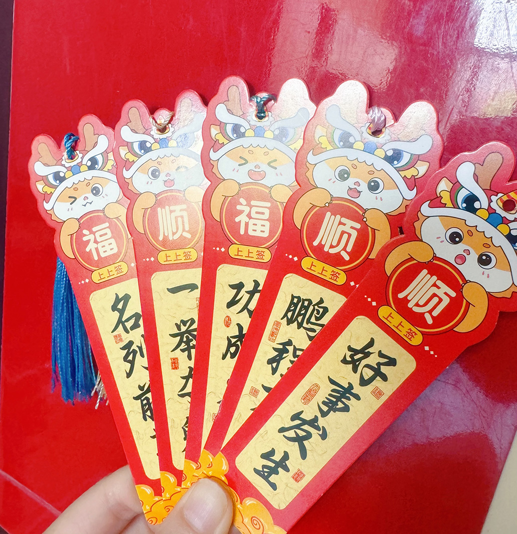 学校还为每一位初三考生送上了一份考前补给大礼包,礼包中最引人注目的是一张精心制作的“上上签”,书写着最诚挚的祝福语,比如“好事发生”“鹏程万里”“功成名就”“一举夺魁”“名列前茅”。礼包中还有一个小巧精致的锦囊,上面绣着“平安成功”的字样。