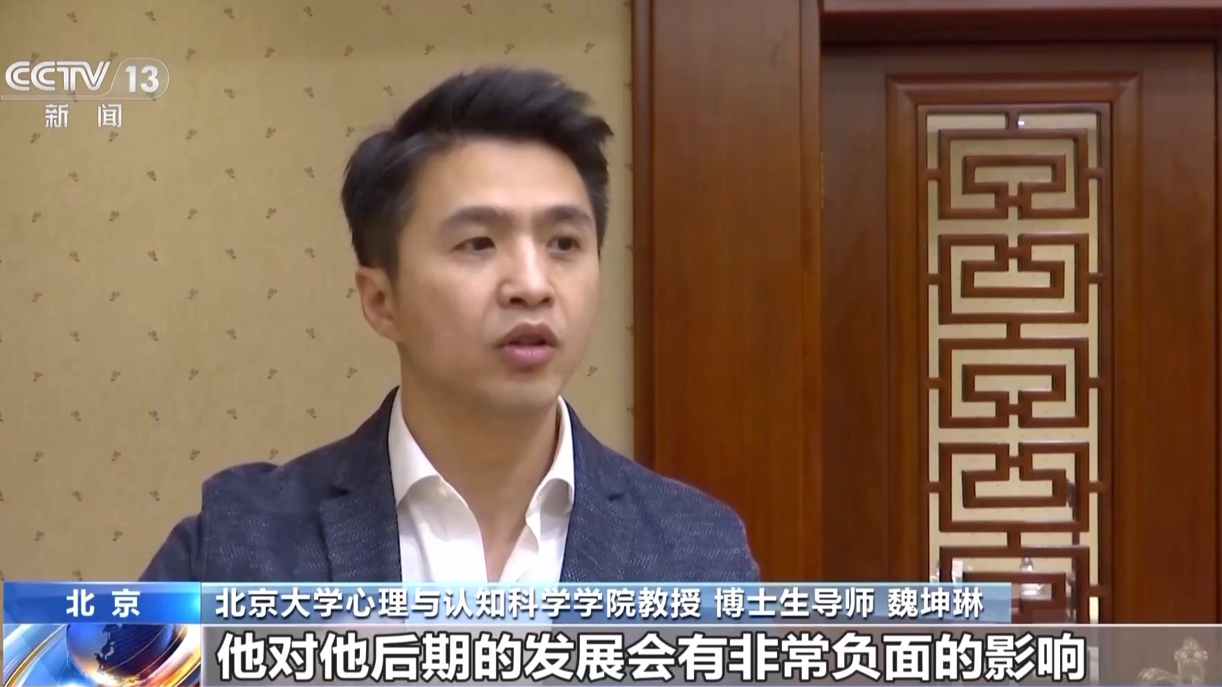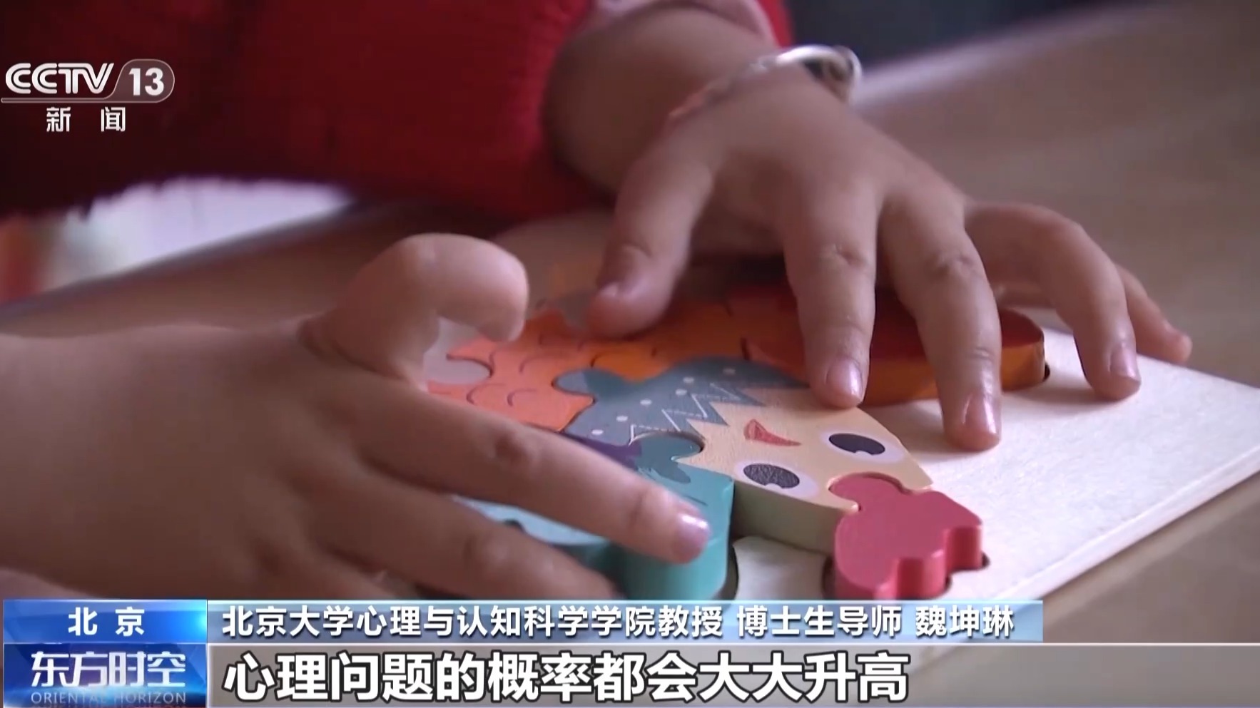 北京大学心理与认知科学学院教授、博士生导师 魏坤琳:如果他大脑能力发育迟缓的话,他对他后期的发展会有非常负面的影响,就包括他后面的学业成绩,他的社会情绪能力,还有如何跟别人打交道,如何控制自己的情绪,包括他出现各种各样的心理问题的概率都会大大增加。