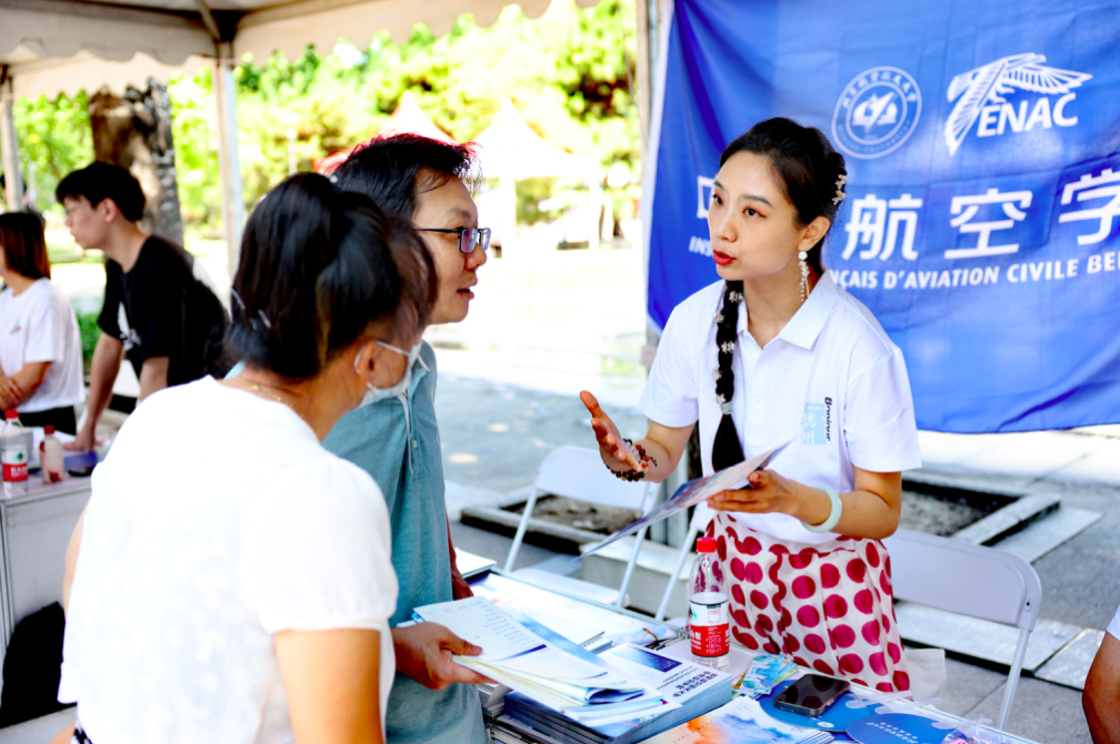 8时30分,北航校园开放日启动。在北航学院路校区的求是广场上,前来咨询的考生和家长把展台团团围住,北航本科招生学院的老师和近30所高校的招生负责人现场答疑。“我看到北航今年新增了飞行器动力工程试验班,分数和排名大概是多少?入学后有哪些必修课?”考生小柳拿着招生手册,向招生老师仔细咨询。他说,这是自己第一次参加高招会,希望在志愿填报前确定好目标院校和专业,“去年,我从电视上看到北航教授飞上太空,就对这所学校充满好奇。这次走进学校,看到了很多高科技的成果,很感兴趣。”