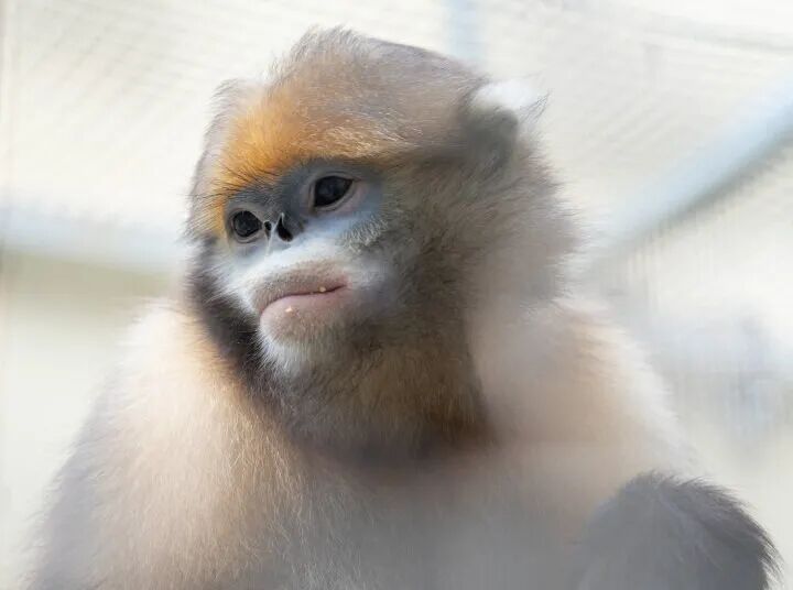 据了解,黔金丝猴是一种只生活在中国贵州铜仁梵净山区域的金丝猴,它们脸部灰白或浅蓝,鼻眉脊浅蓝,尾部细长,以植物性的叶、芽枝、果实及树皮为食。