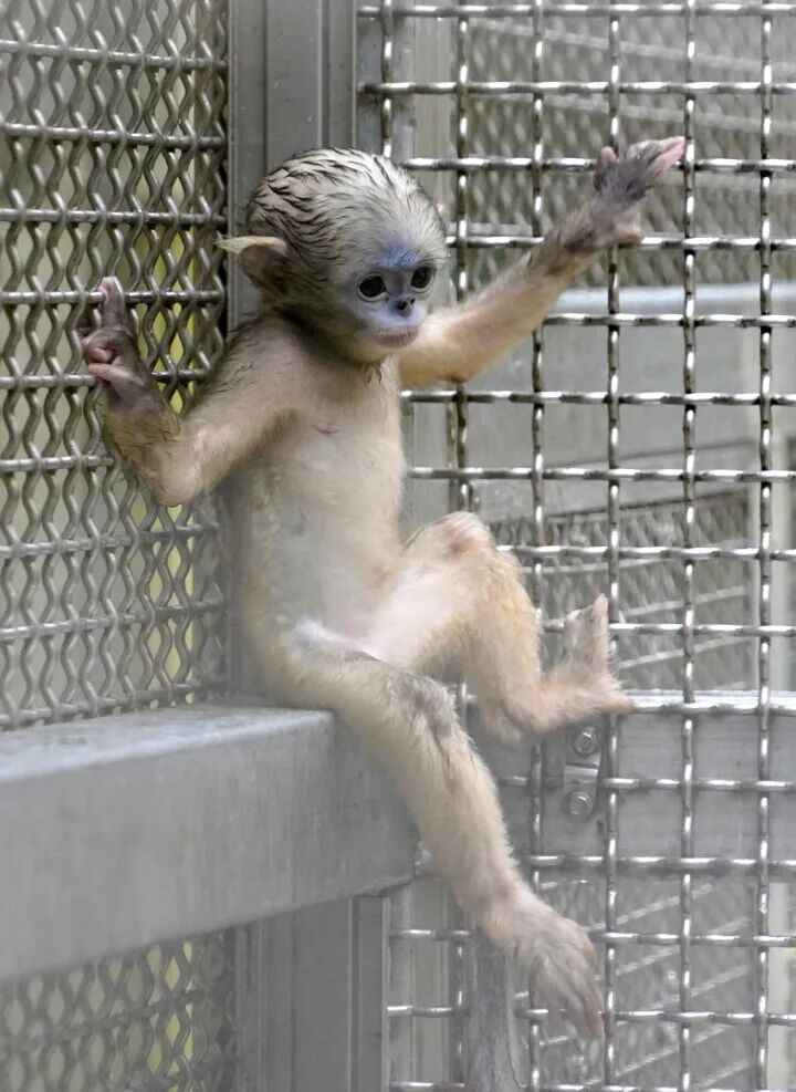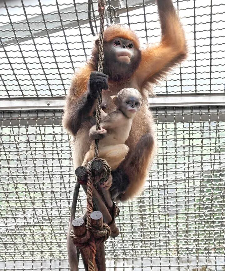 “那只雄猴,是2011年从梵净山下救助回来的。这只雌猴是2014年,我们的巡山队员从梵净山上救助来的……你看那只它抱在怀里的银灰色小猴就是它俩第四个‘爱情的结晶’。也就是今年3月21日出生之后,面向全网征名的‘小公主’。”一踏进笼舍,贵州梵净山管理局野生动物救护中心(黔金丝猴研究中心)助理工程师赵静就高兴地向记者介绍起生活在这里的黔金丝猴。