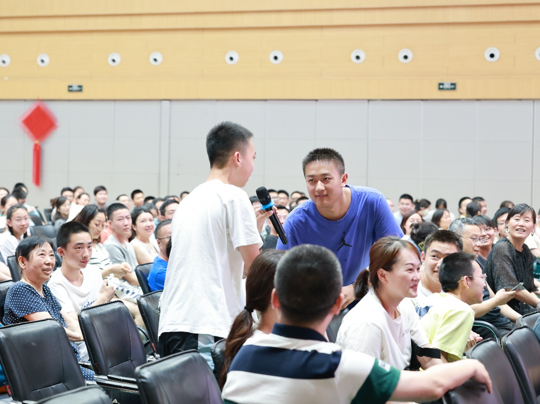 随后的提问环节几乎没有给树德中学老师们回答的机会,学生们忙着“弟子服其劳”,家长与学生提出问题的角度更是迥然不同,家长们更关心孩子入学后的衣食住行,学生则问出了诸如“帅哥美女多不多?”“师哥师姐打游戏的水平如何?”之类的问题,学长们的回答也十分接地气:“看看台上你就知道啥叫靓仔了!”“什么游戏都有人打,你来了可以找到好多‘师傅’!”
